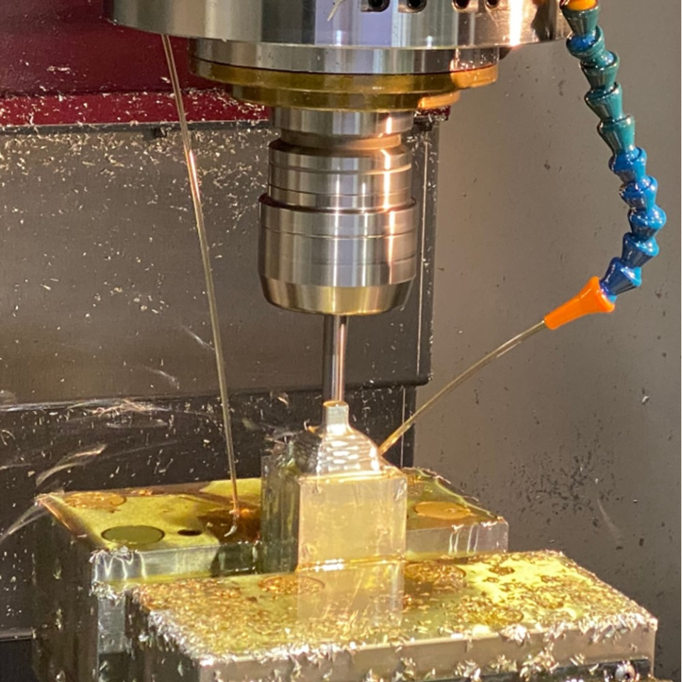材料はブロックの状態から、風鈴の形に削り出していきます。それは、ダイキの主力製品である金型の製作時と同じように、高品質な製品をお客様に届けたいからです。