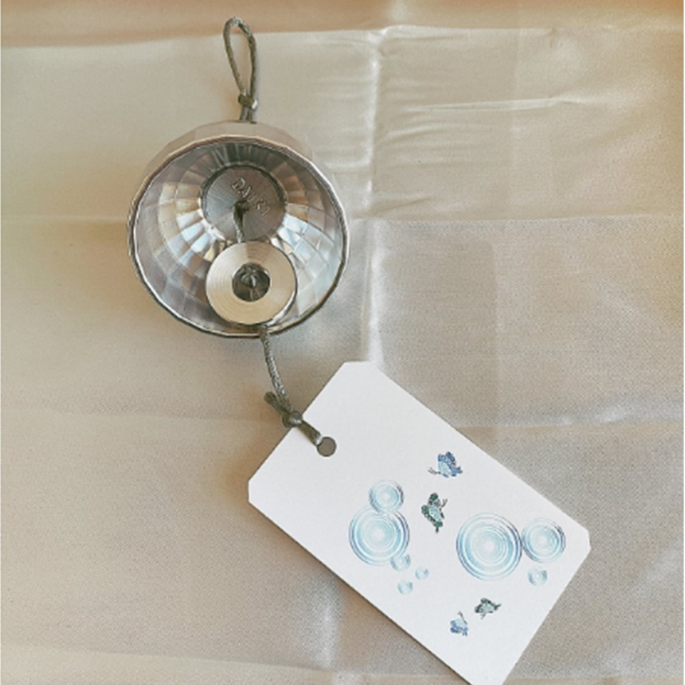 一つひとつ心をこめて製作したアルミ風鈴には、DAIKIの文字が刻印してあります。自信を持ってお客様にお届けできるように、スタッフが細心の注意を払って製作した証としての刻印です。約半世紀にわたり培ってきたモノづくり屋の技「ダイキプライド」を活かした、ダイキのアルミ風鈴。ぜひお手元に置いていただき、癒しの音色をお楽しみください。