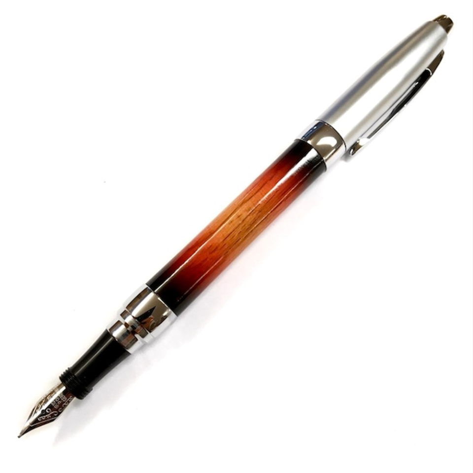 瀬戸市の森の整備で採れた、どんぐりの木を職人が見極め、一つひとつ丁寧に削りだして製作した万年筆になります。