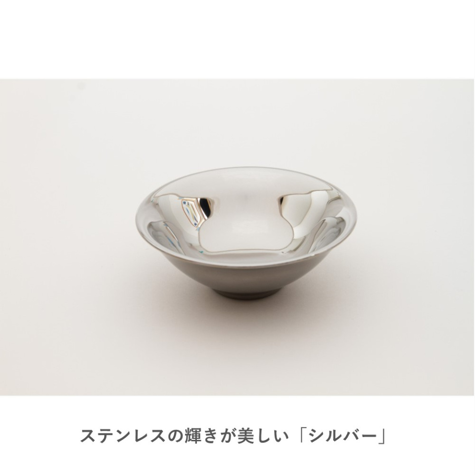「平盃」に採用されている「二重構造」は、プレスした2枚のステンレスを溶接して重ねたもので、継ぎ目が分からないように重ね、磨き上げることで生み出されます。