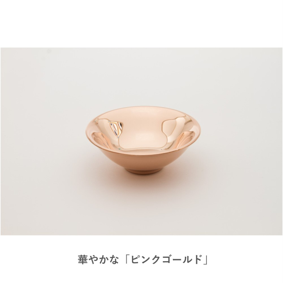 金メッキを施した「ゴールド」、ステンレスそのものの輝きが美しい「シルバー」、華やかな「ピンクゴールド」の3種類。職人の技術で丁寧に磨き上げた美しい輝きが特別な時間を演出します。