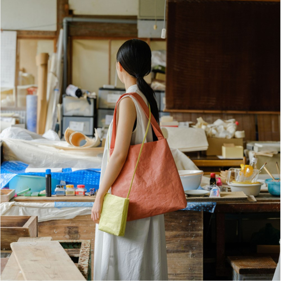 手漉き和紙に撥水加工を施した、わずか230gと軽いワンショルダーバッグです。
