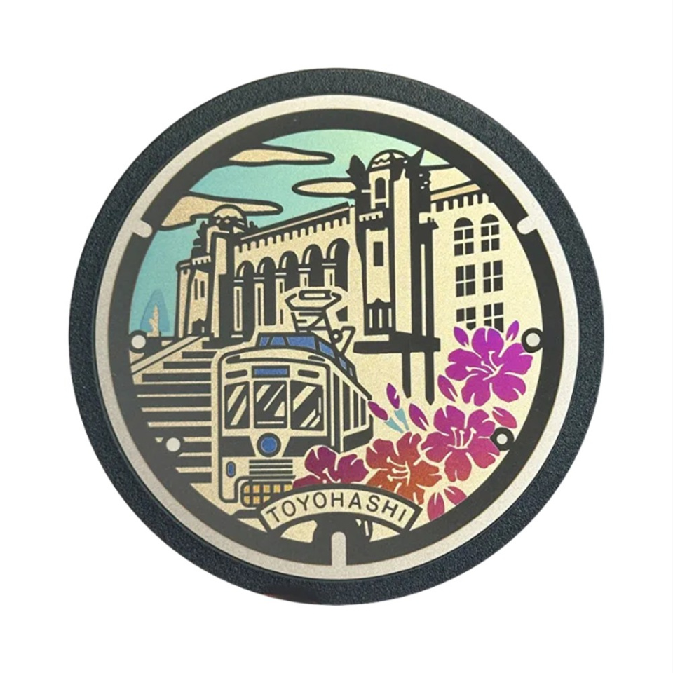 豊橋市政90周年を記念して1996年に製作したデザインマンホール蓋(3種類)の一つ。