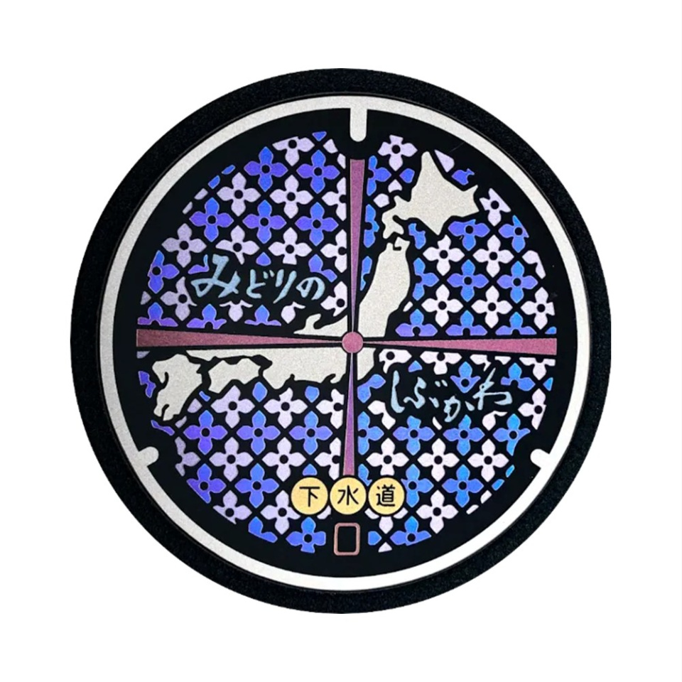 ヤスオカのチタン製ミニチュアマンホールはレーザー技術による構造色で作成し、繊細な色でマンホールの再現性を高めています。