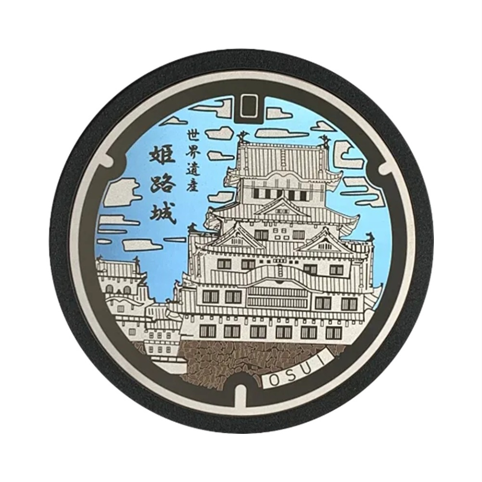 平成5年に日本初の世界文化遺産に登録された国宝「姫路城」のデザインマンホール蓋です。平成28年に「平成の大修理」が終わったことを記念して製作されました。
