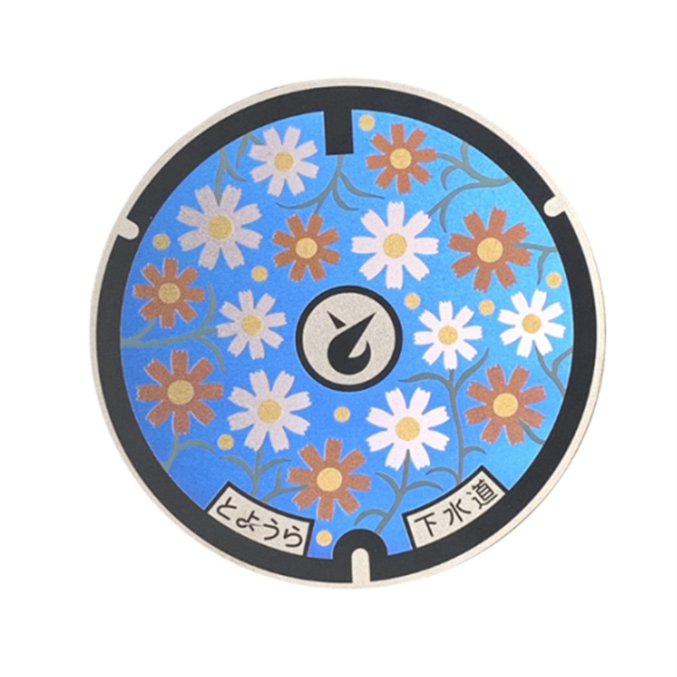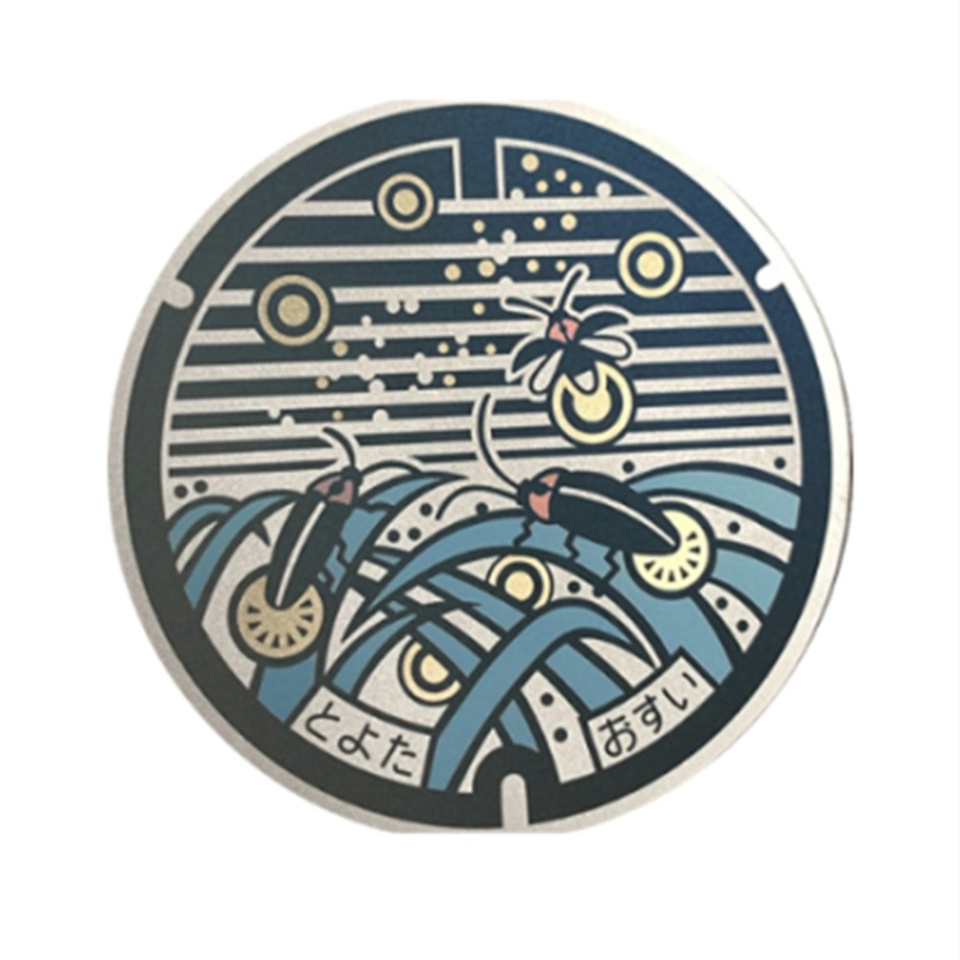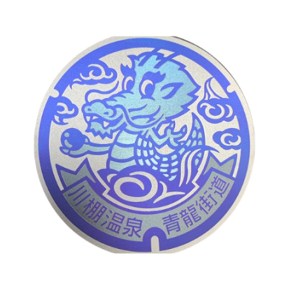 ヤスオカのチタン製マンホールメダルはレーザー技術による構造色で作成し、繊細な色でマンホールの再現性を高めています。