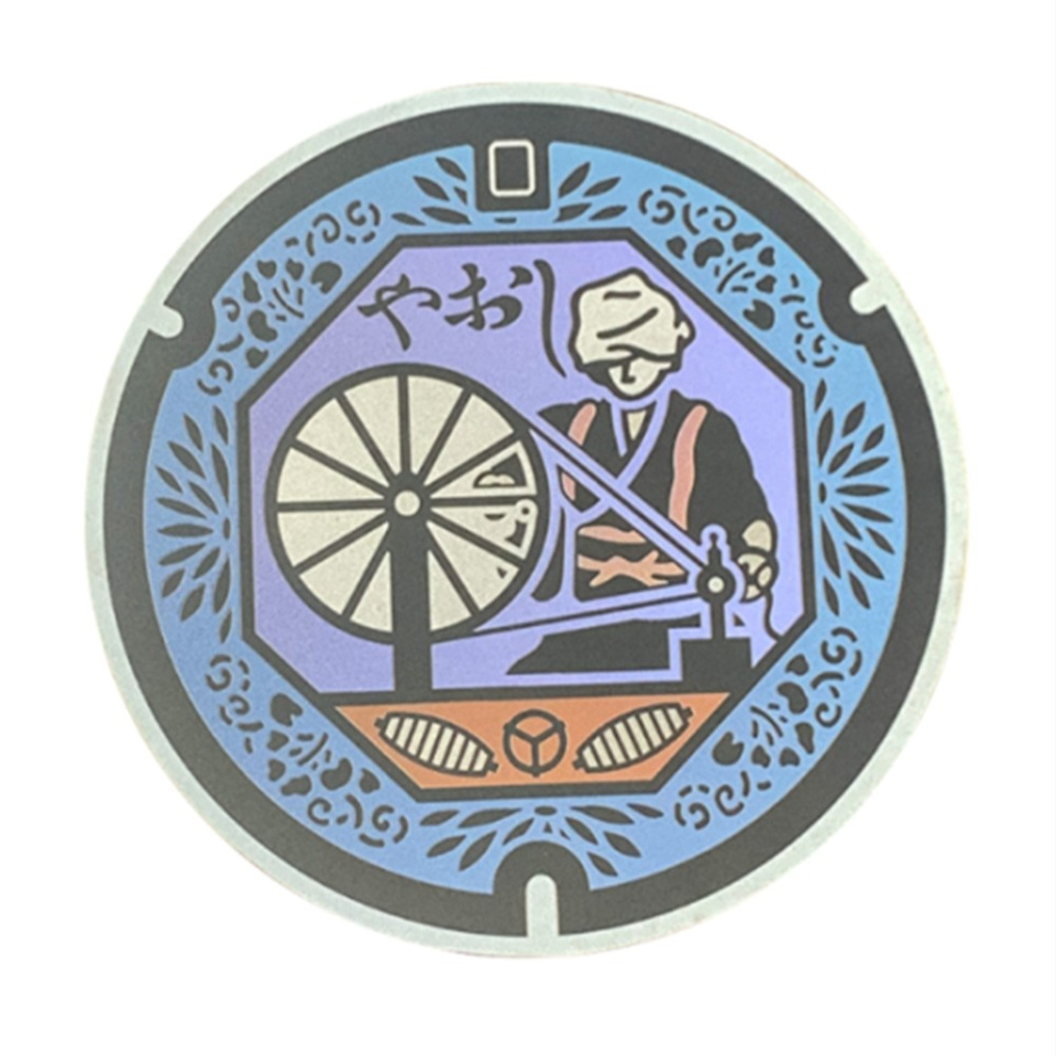 ヤスオカのチタン製マンホールメダルはレーザー技術による構造色で作成し、繊細な色でマンホールの再現性を高めています。