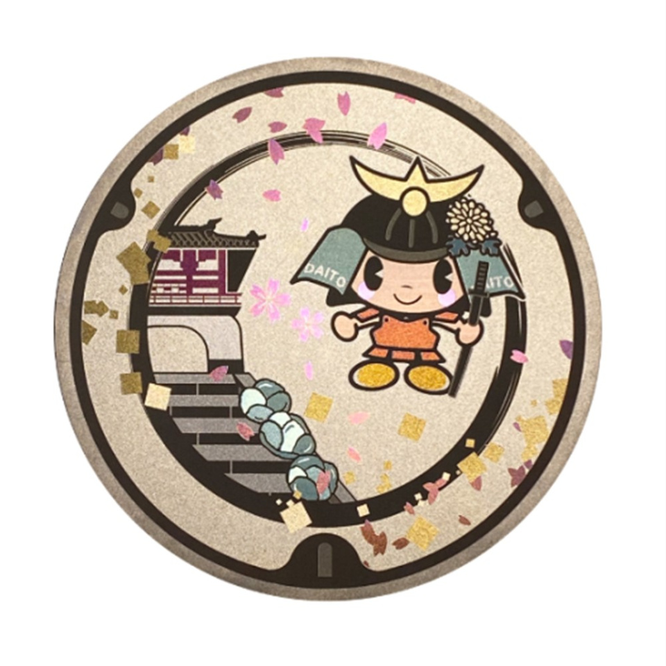 織田信長に先駆けた戦国時代最初の天下人「三好長慶」が居城した飯森城跡があることから、甲冑をまとった市のキャラクター「ダイトン」と江戸時代から続く『野崎まいり』の舞台、野崎観音(慈眼寺)がデザインされています。