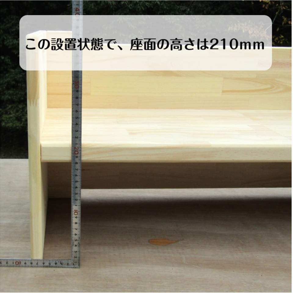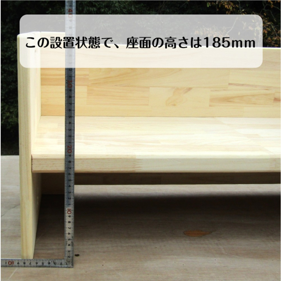 一番の特長は、長いすの上下をひっくり返すと、それぞれ座面の高さが185㎜、210㎜と2種類の高さになることです。お子さまの成長にあわせてひっくり返してください。