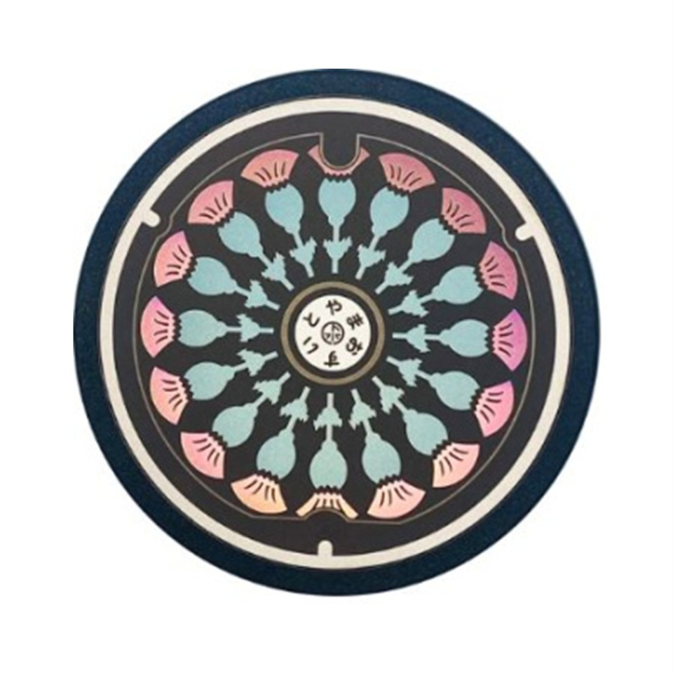 ヤスオカのチタン製ミニチュアマンホールはレーザー技術による構造色で作成し、繊細な色でマンホールの再現性を高めています。
