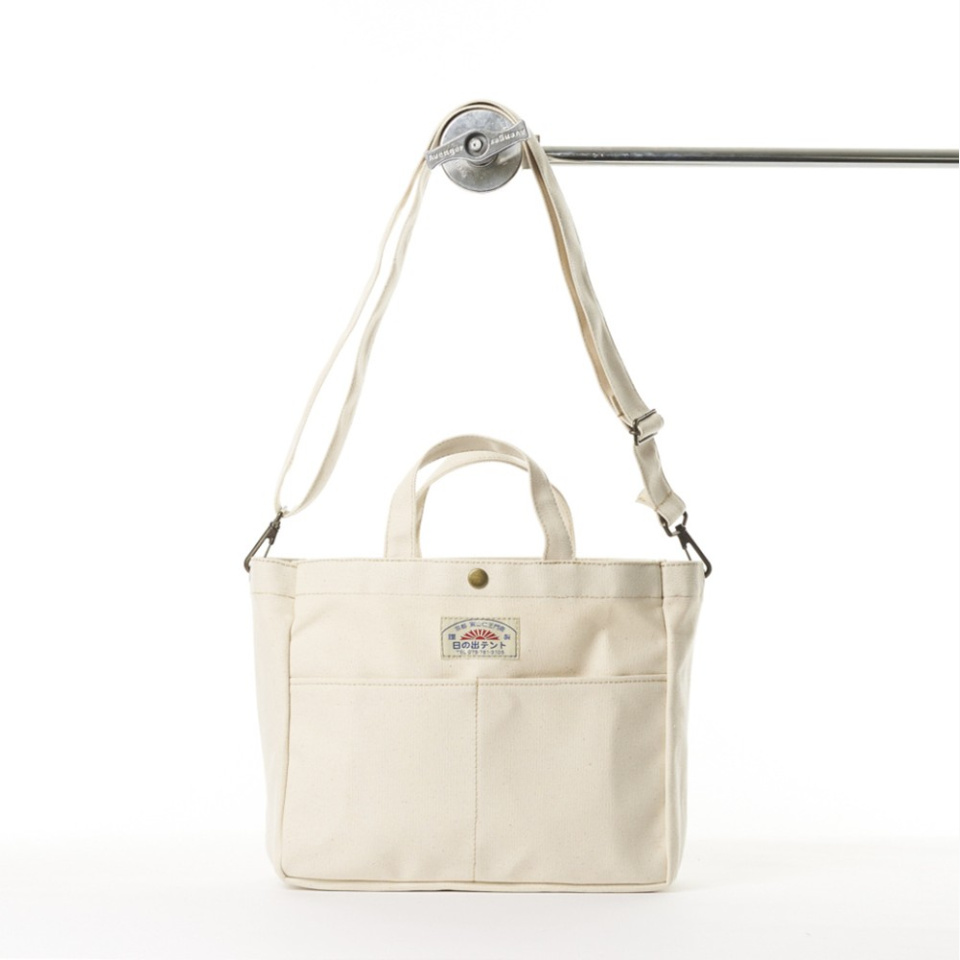 日の出テントの商品は、鞄から小物まですべて自社の工房にて一つひとつ丁寧に作り上げています。テント屋さんならではの丈夫な生地を使用し、永く使っていただけるものをお届けしています。修理などのアフターケアも可能な限り対応させていただいていますのでお気軽にご相談ください。また、ご来店のお客様に限り、色々な種類のテント地や100色ある綿帆布の生地、大きさ、糸の色、持ち手の長さ、ポケットなどフルオーダーも承っておりますので、詳しくはお問い合わせください。