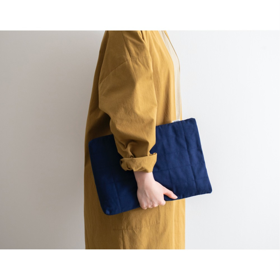 京都の町衆文化を支える旗や幟(のぼり)、暖簾(のれん)の技を生かした仕事道具ブランドkiten.kyotoによる、半纏(はんてん)に使われた丈夫な生地を使ったパソコンケース。表地の鮮やかな色と、裏地の「一重刺子」が美しい道具入れです。