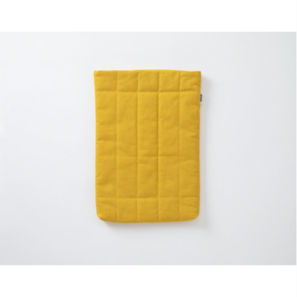 Sleeve(パソコンケース)は、13-14インチのPCに対応しています。縦型で上部から簡単に出し入れでき、磁石で口が留まるシンプルな構造のためリュックにそのまま入れても使いやすいタイプです。綿100%の丈夫な生地を使い、間に綿を挟むことでクッション性を高めています。