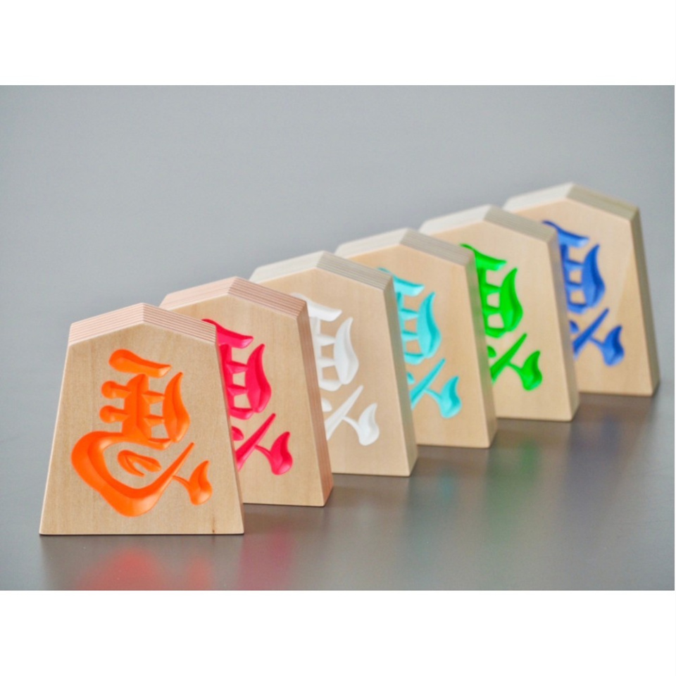 昔から親しまれてきた将棋の飾り駒を、現代風に蛍光カラーを塗装して色彩豊かにアレンジしました。