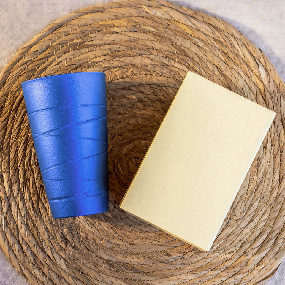 一度焼成したカップに、職人によって一つひとつ手仕事でラスター吹きをしています。
