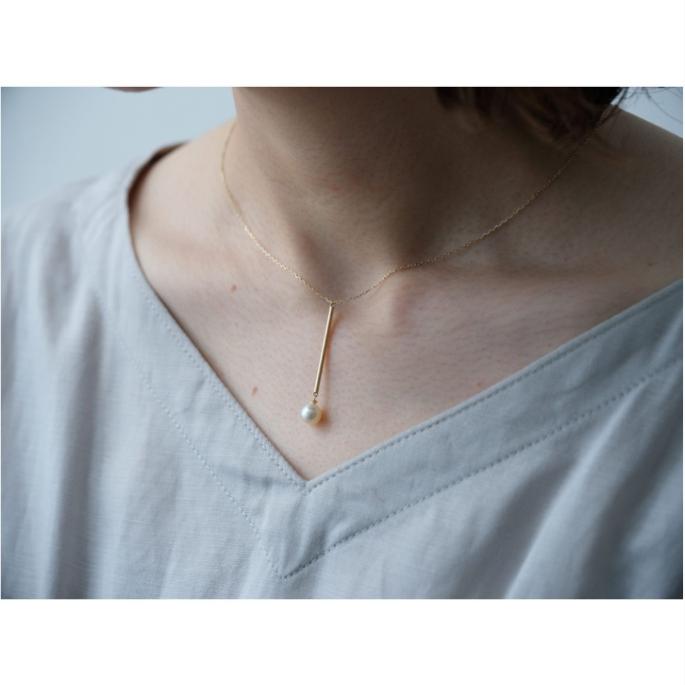か細い10金のストレートパイプに支えられながらその先で不規則にきらめくバロックパールは、まるで移ろう感情そのもの。