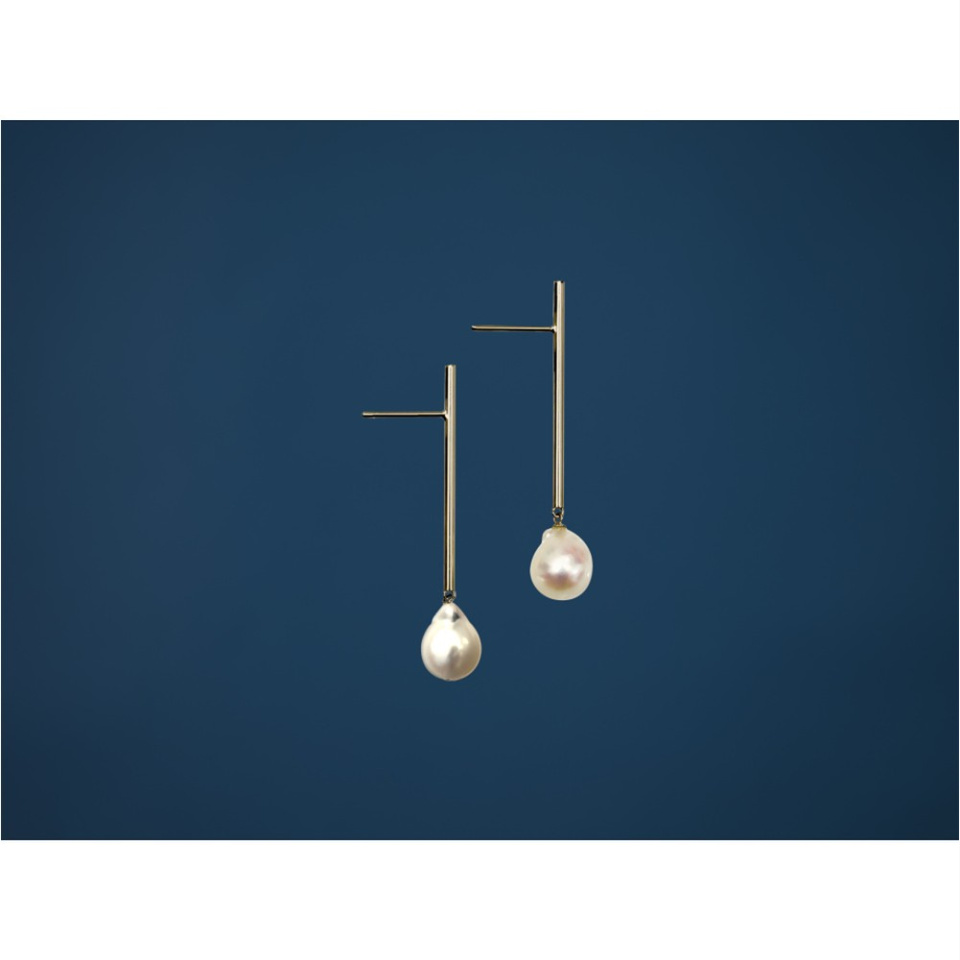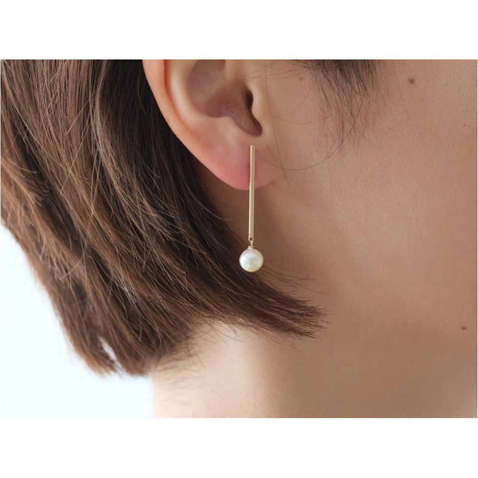 か細い10金のストレートパイプに支えられながらその先で不規則にきらめくバロックパールは、まるで移ろう感情そのもの。