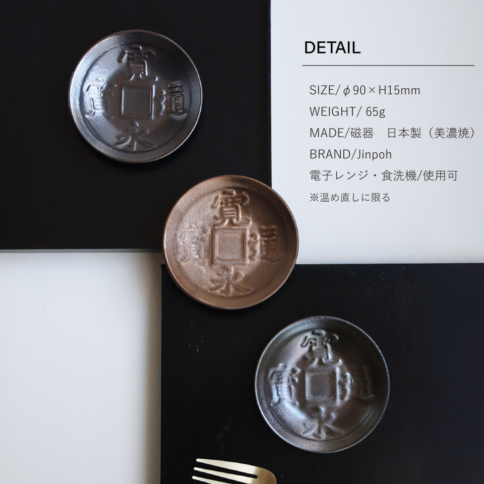 彫りの凹凸により立体感があるデザインになっています。表面の金彩、銀彩らが上品にお料理を引き立たせる小皿です。