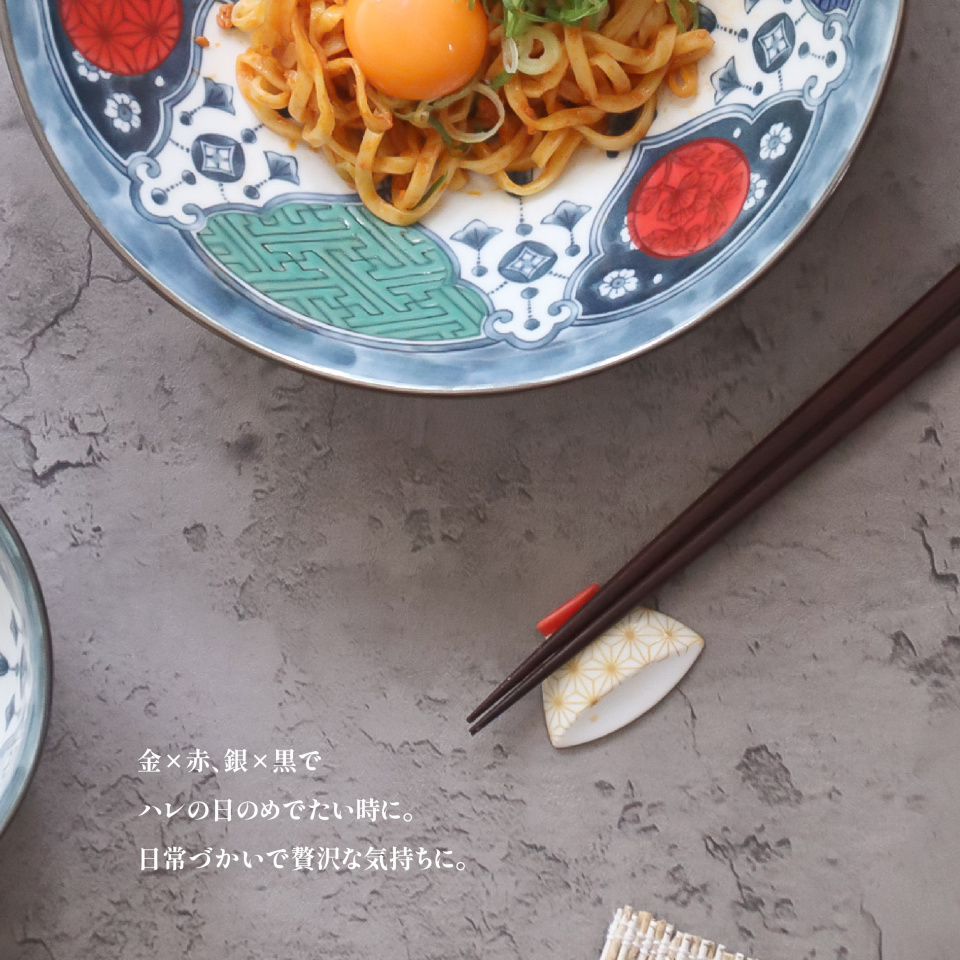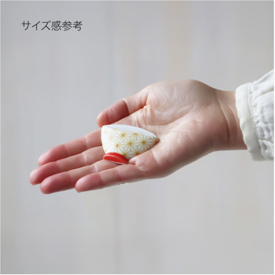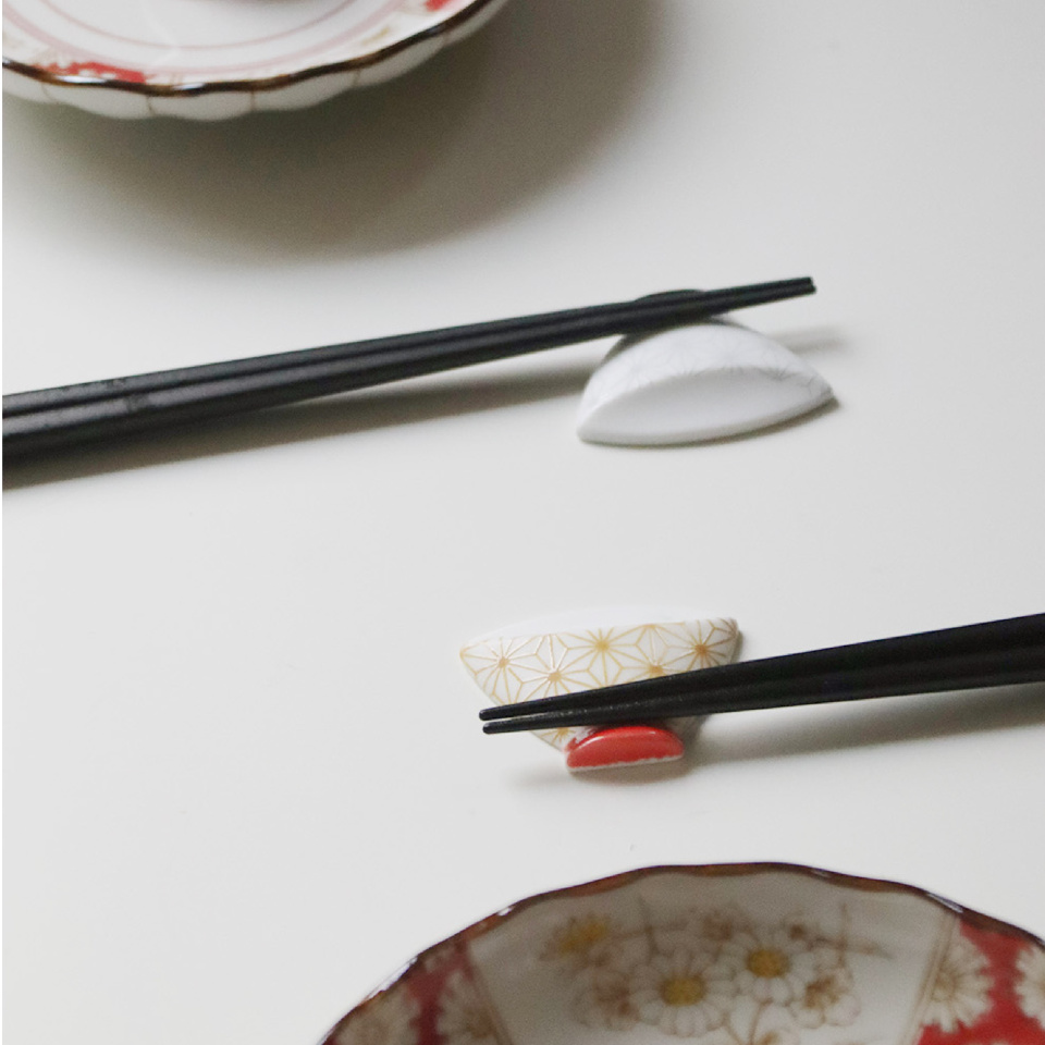 縁起の良い和文様が小さな茶碗型の箸置になりました。落ち着いた煌めきの金銀が華やかで、ころんと小さく可愛いながらもしっかり箸を受け止めてくれる箸置きです。