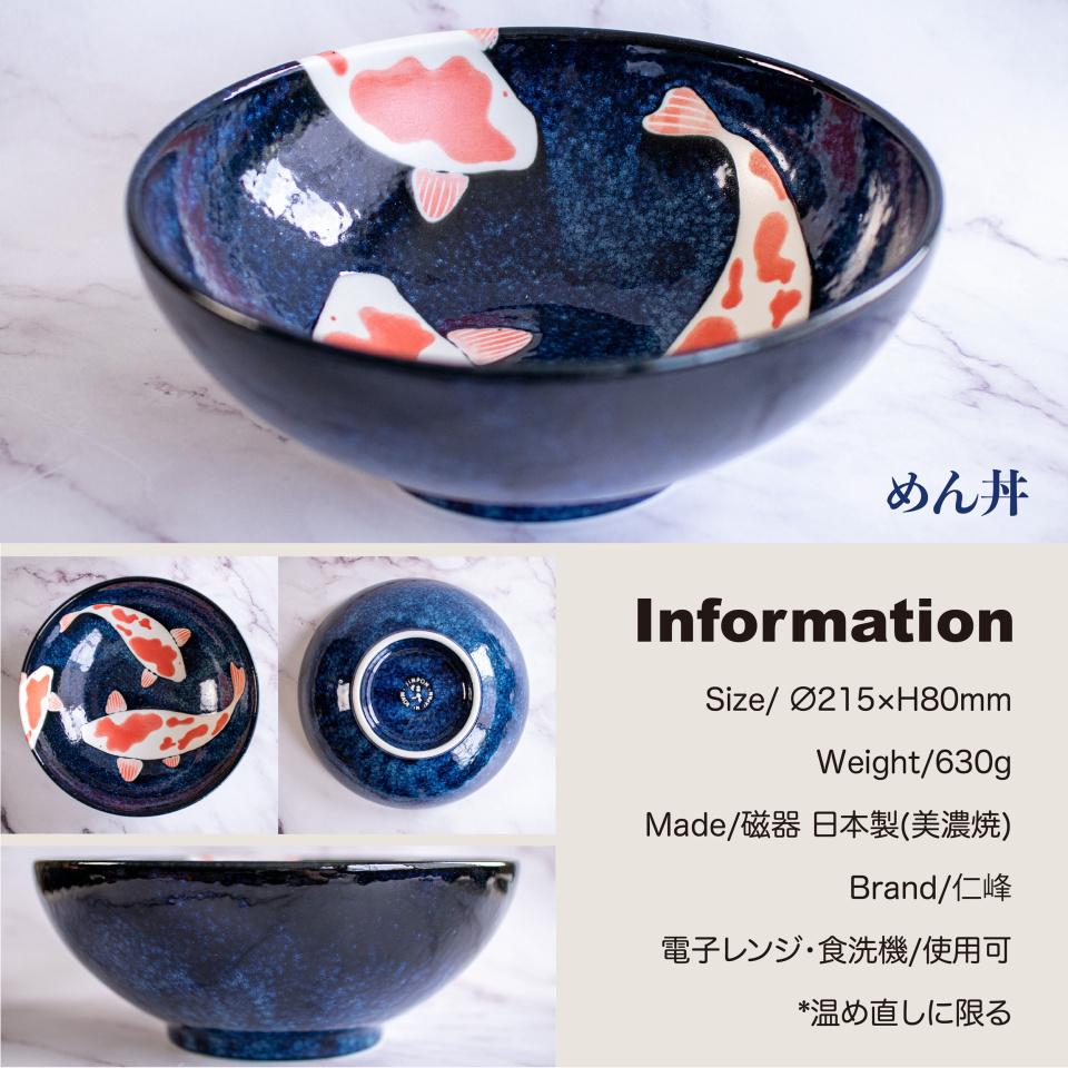 深さがあってたっぷり入り、磁器で出来ているので軽くて丈夫なめん丼です。