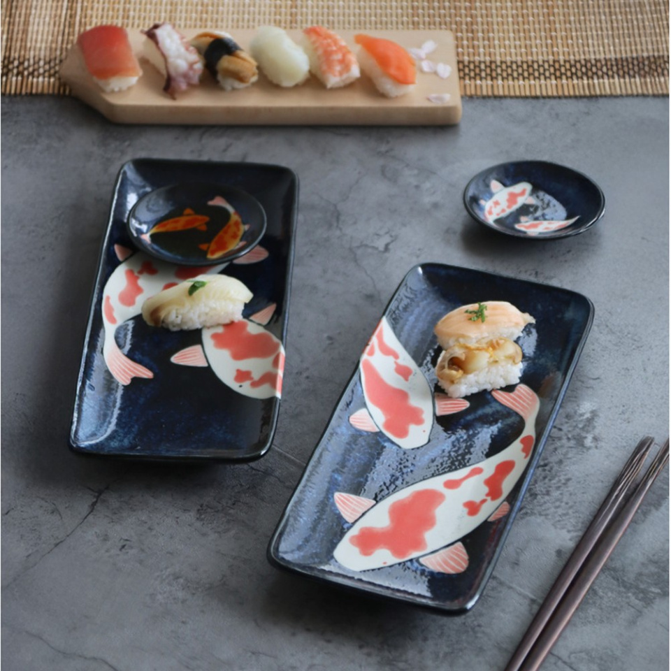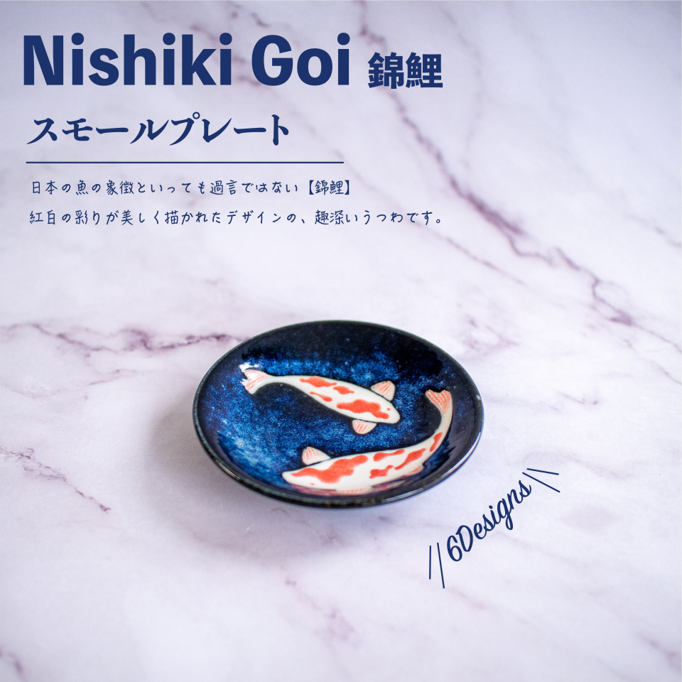 撥水の技法を用いて、錦鯉の赤と白の美しさがより際立つようにデザインしています。