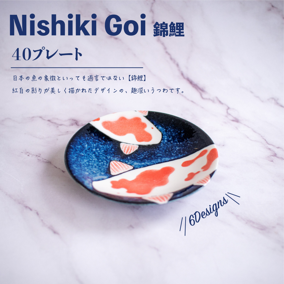 撥水の技法を用いて、錦鯉の赤と白の美しさがより際立つようにデザインしています。