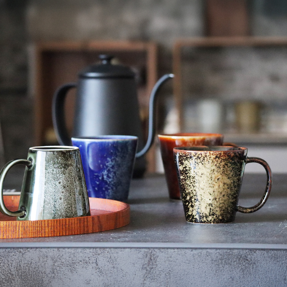 じわじわっと表れる窯変のデザインが、シンプルカラーの中に個性を出します。