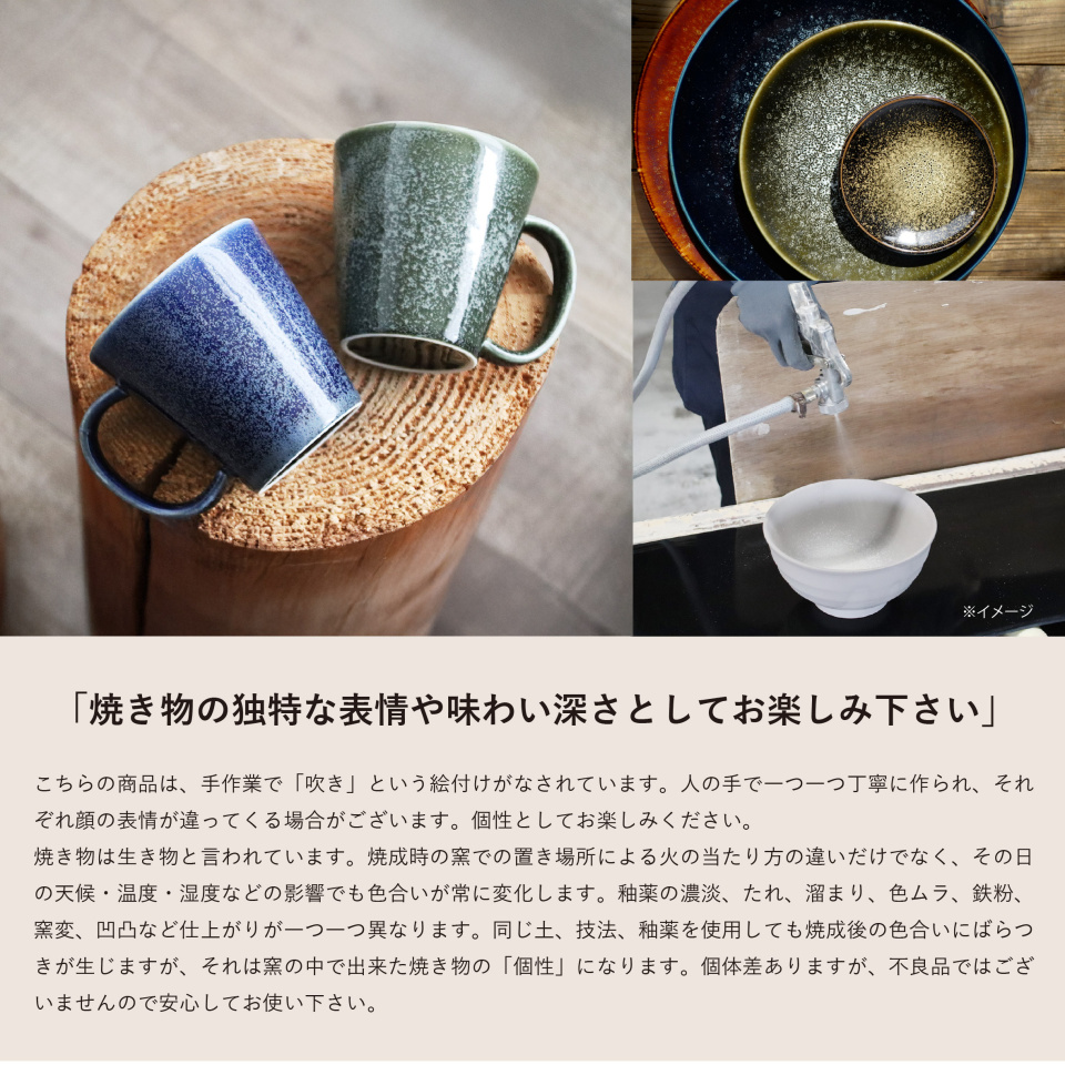 ・焼き物の性質上、鉄粉、色ムラ、釉垂れ、ピンホール、小キズ、多少のゆがみが発生する場合がございますが、 不良品ではございません。またご使用上の問題はございませんので、ご安心ください。