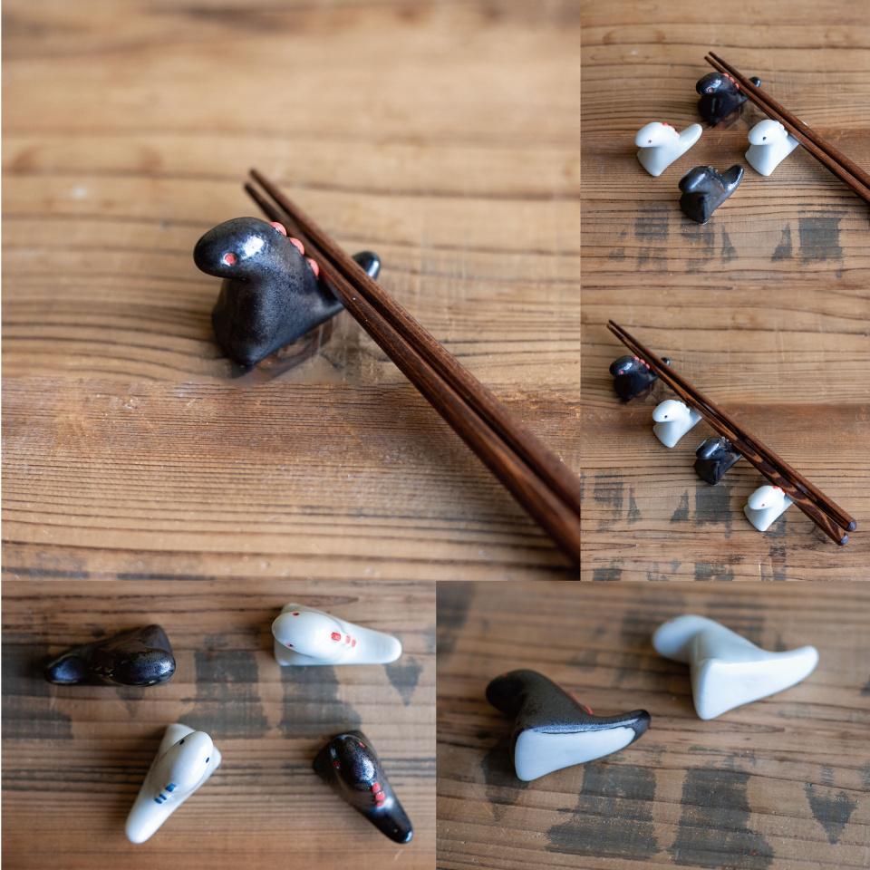 こわカワ恐竜がちょこんと佇む箸置きになって食卓に。