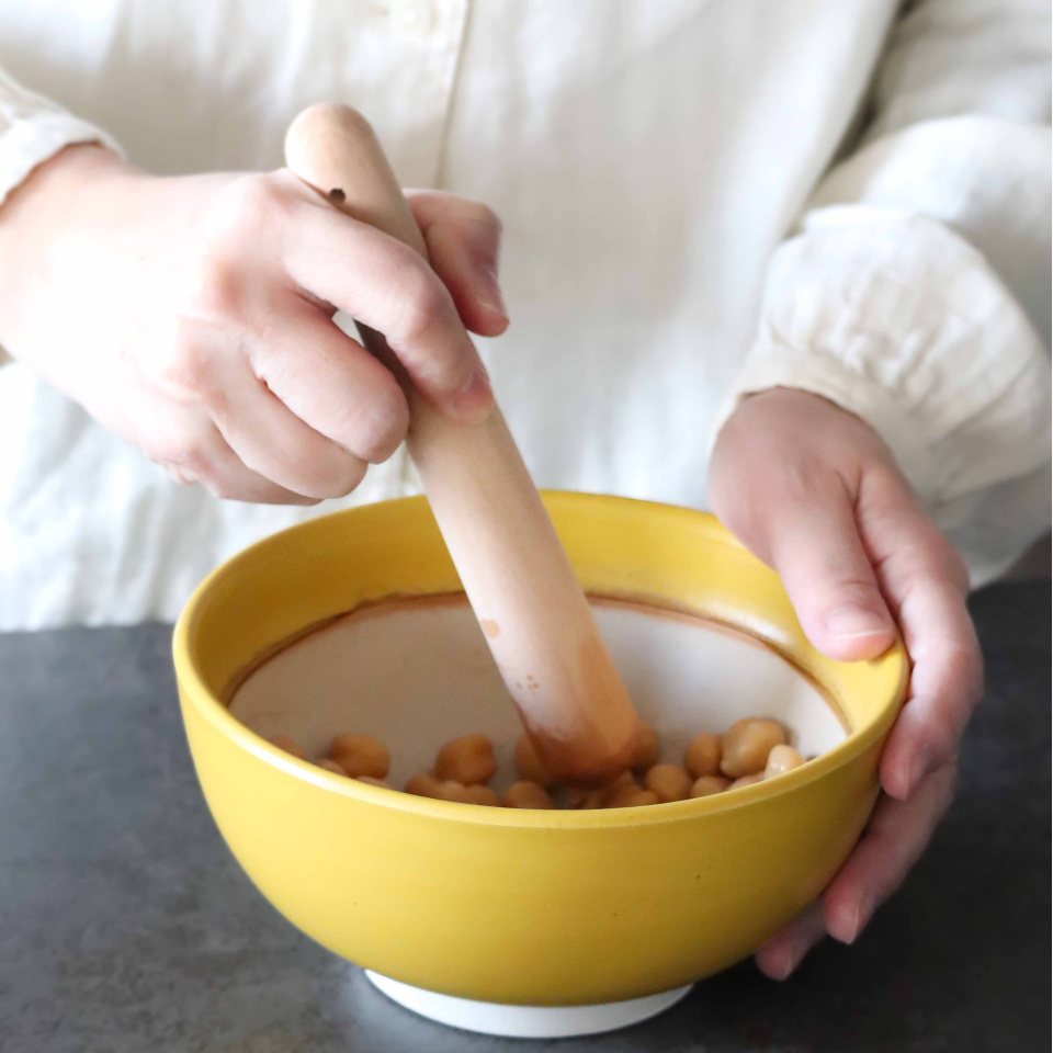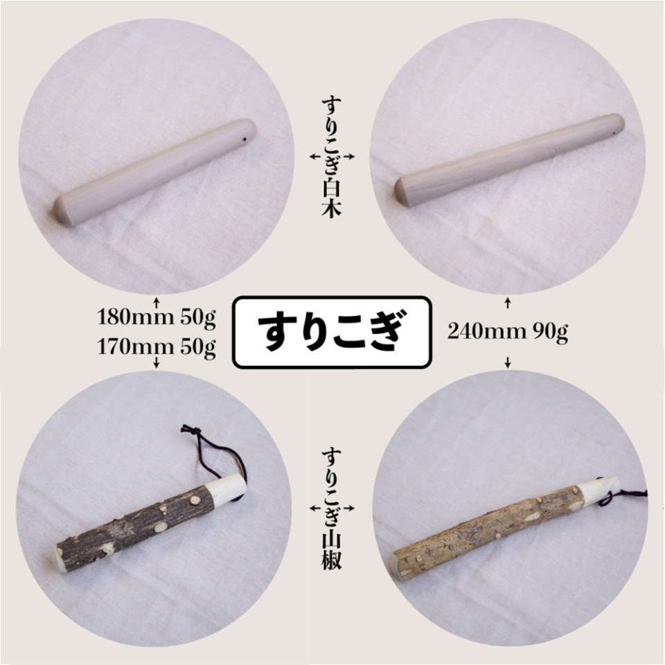 水に強く、すりこぎに適した硬さの木材でしっかりと食材をすりつぶせます。