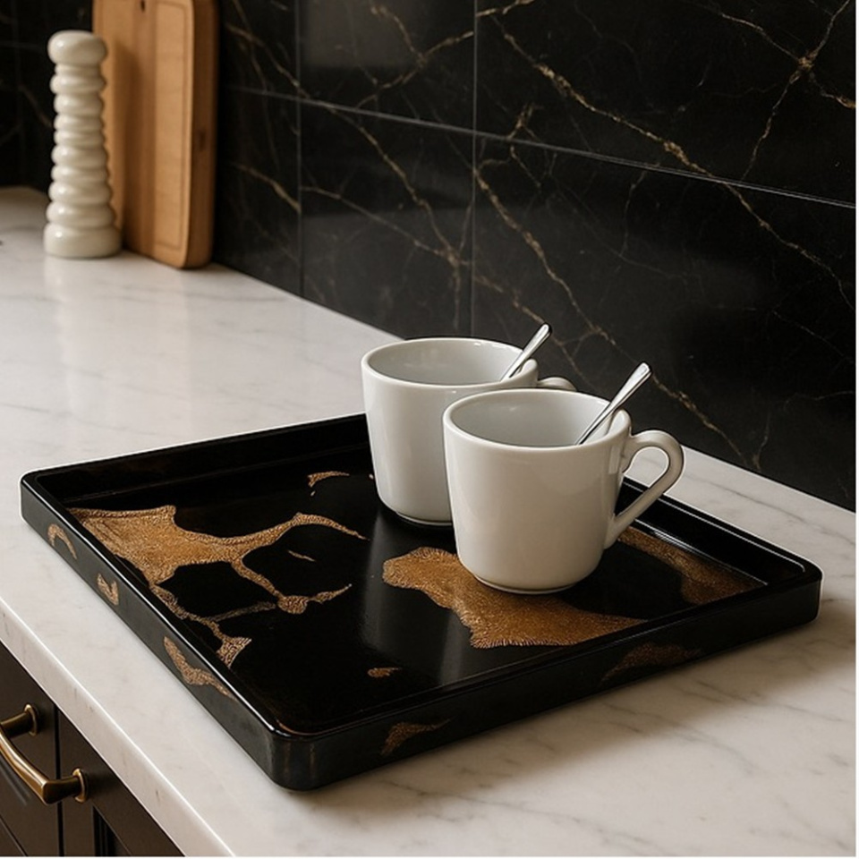 日本の伝統技術「漆塗り」を施した木製トレイ。