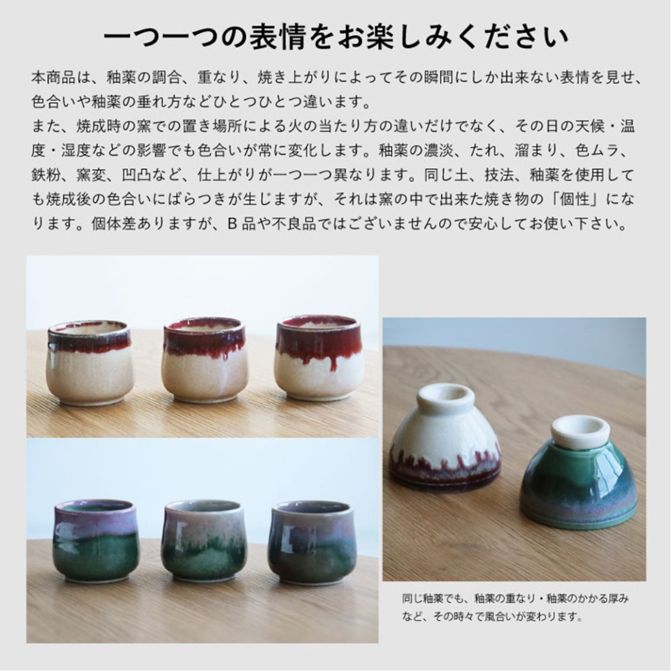 ・焼き物の性質上、鉄粉、色ムラ、釉垂れ、ピンホール、小キズ、多少のゆがみが発生する場合がございますが、 不良品ではございません。またご使用上の問題はございませんので、ご安心ください。
