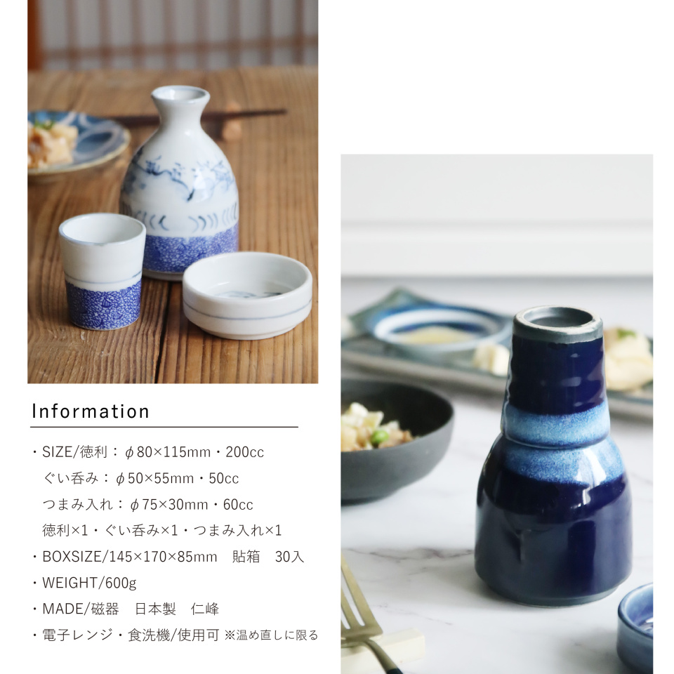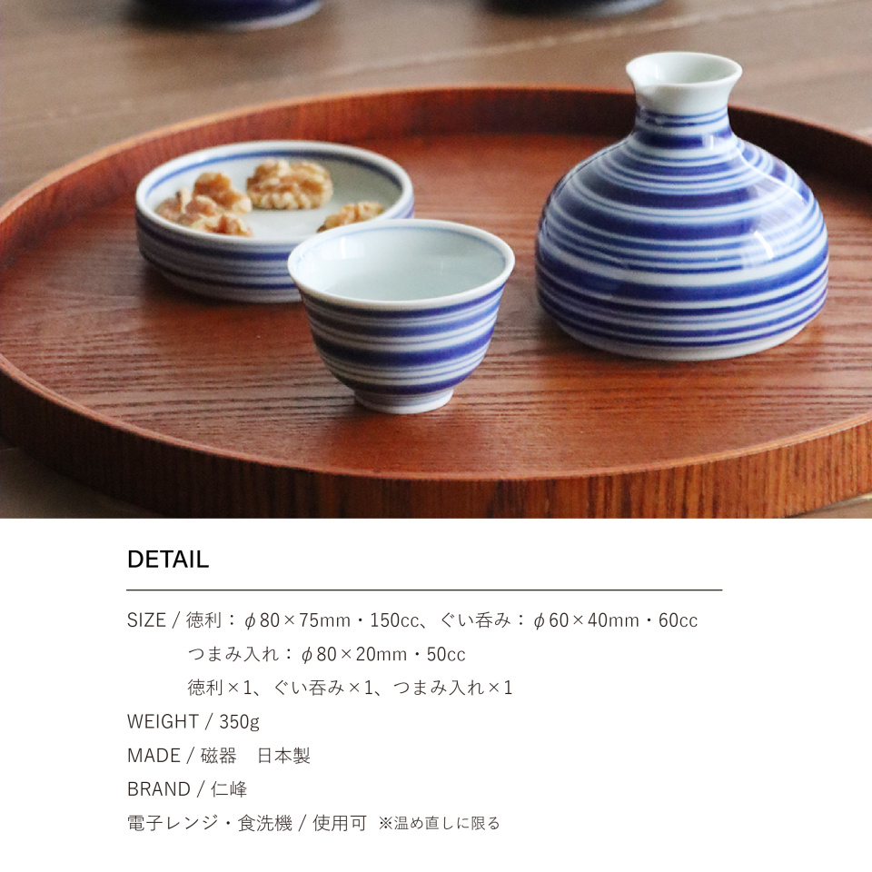 収納にも優れており、つまみ入れのお皿は徳利の下に、ぐい呑みは徳利の上に被せることが出来るのでスタイリッシュに片づけることが出来て場所も取りません。
