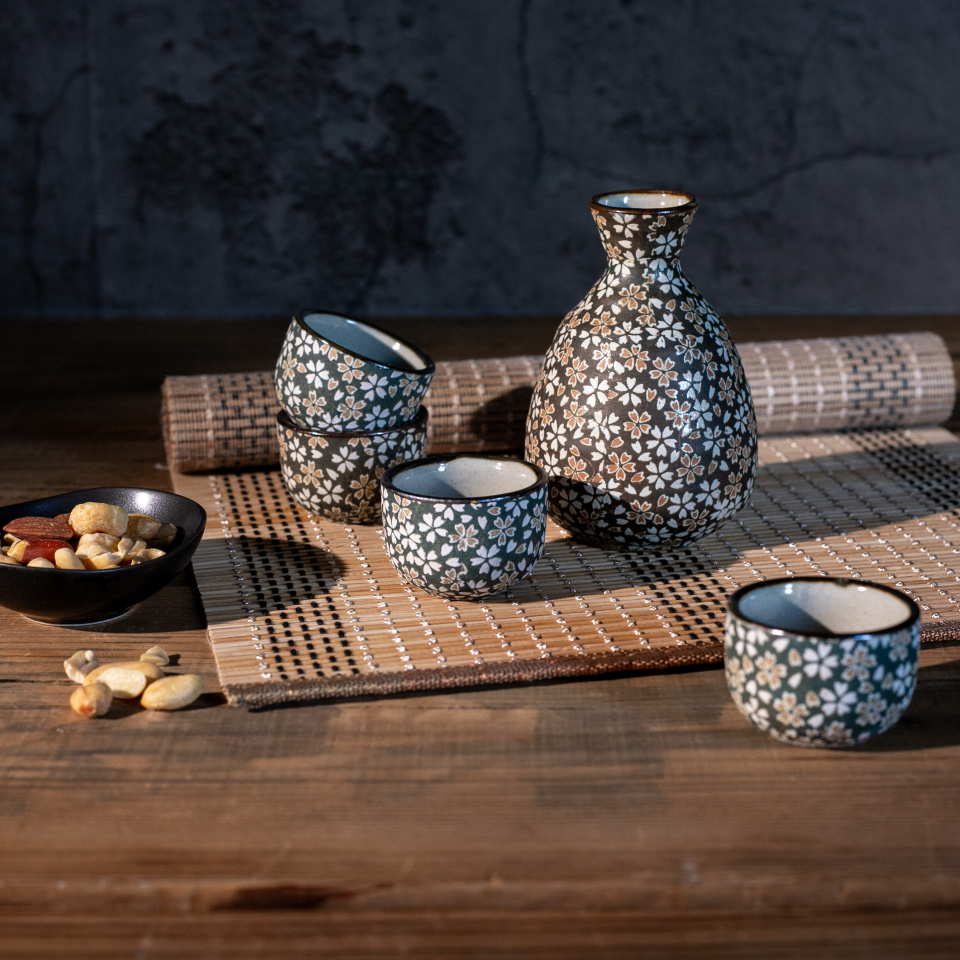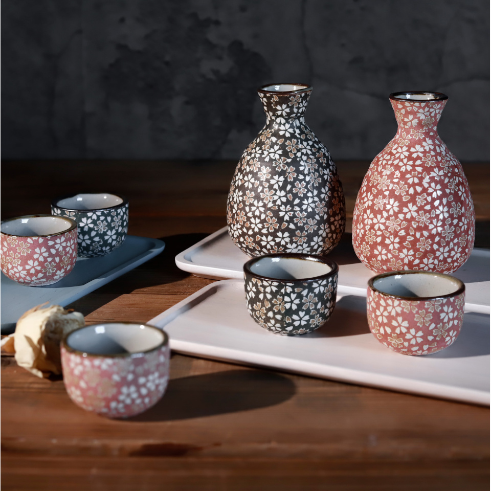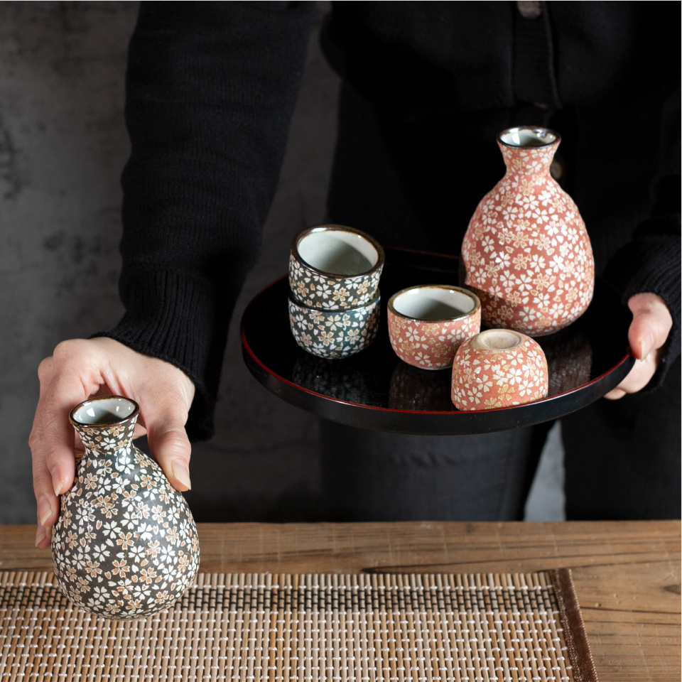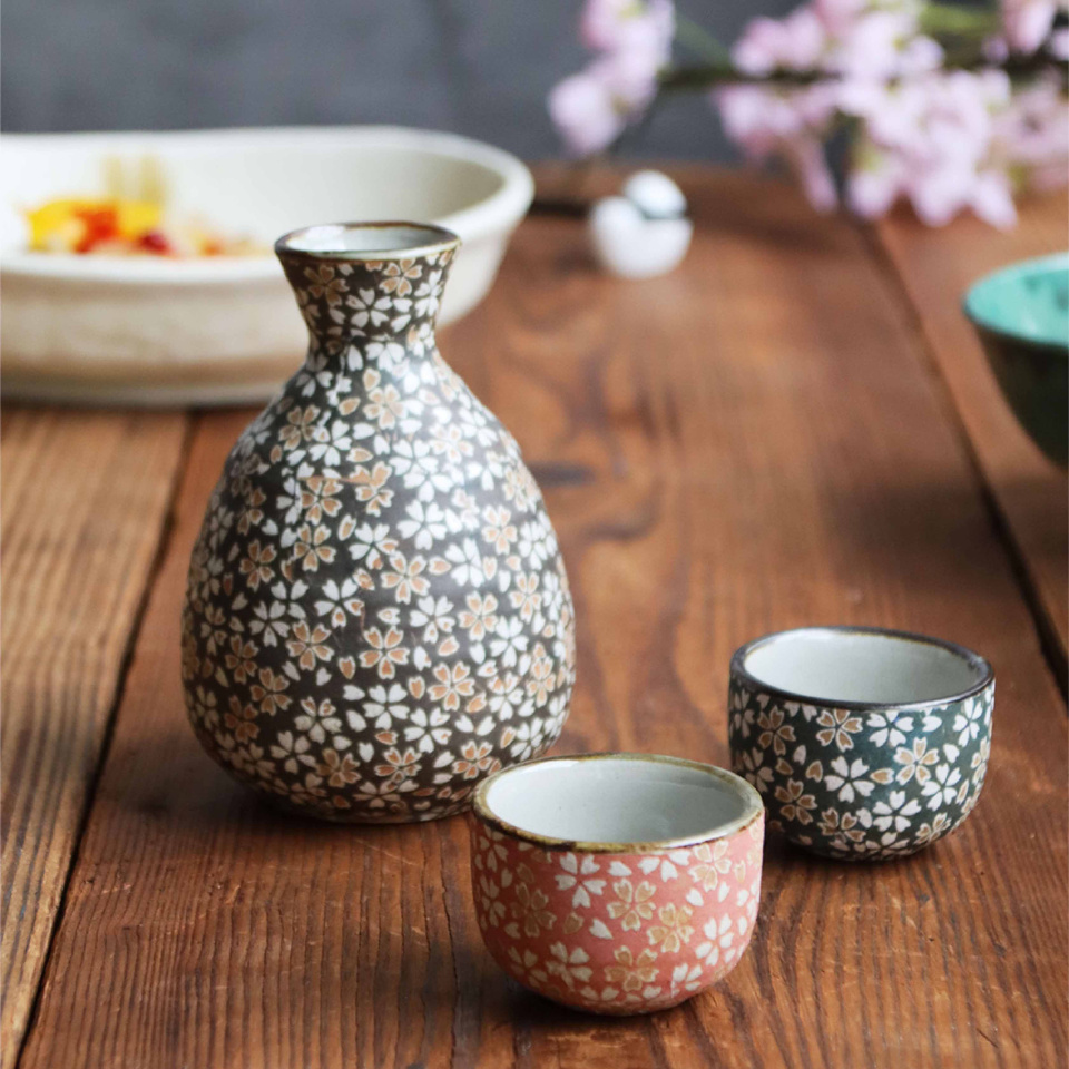 小花散る古風なデザインが美しい酒器です。