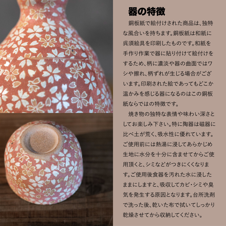 転写紙による絵付の技法で、職人が時間と手間を掛けて丁寧に一つひとつ入念な手作業でお作りしております。