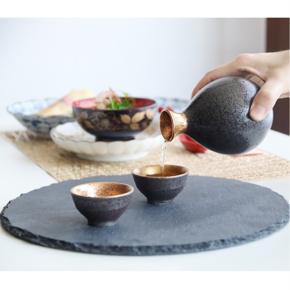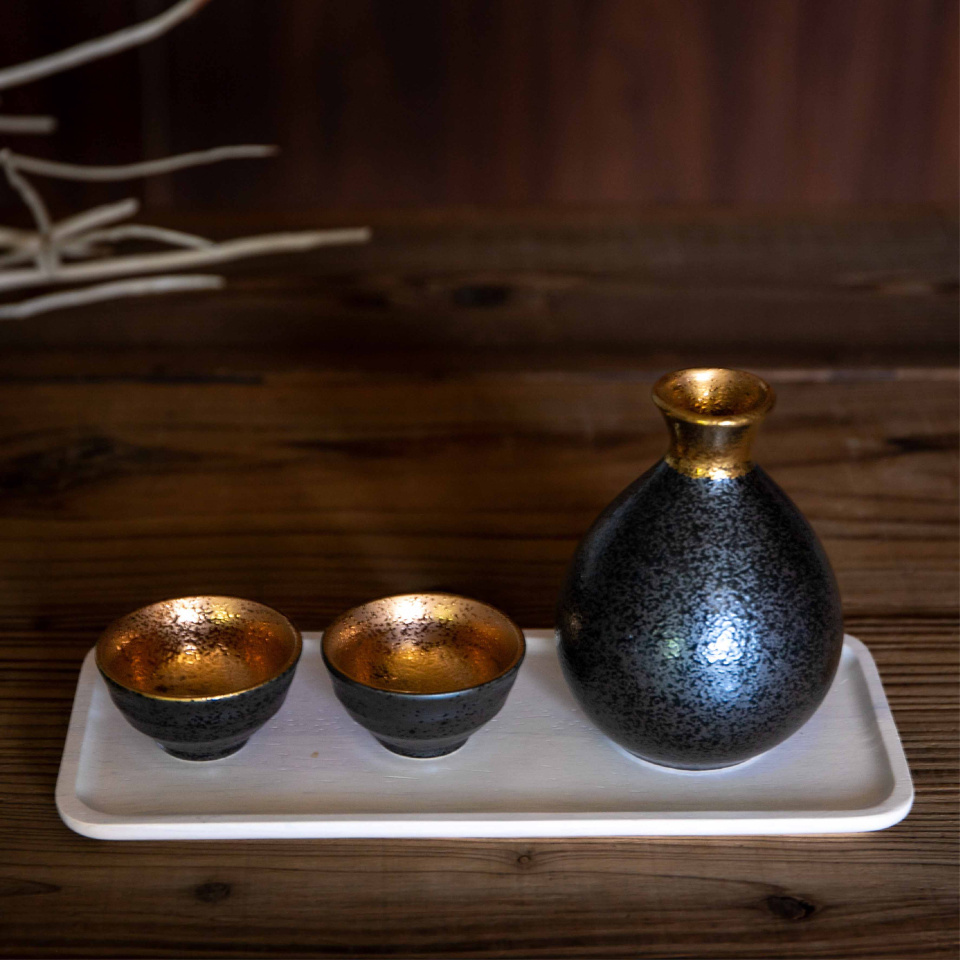光の角度で表情を変えて輝く、高級感ある酒器です。