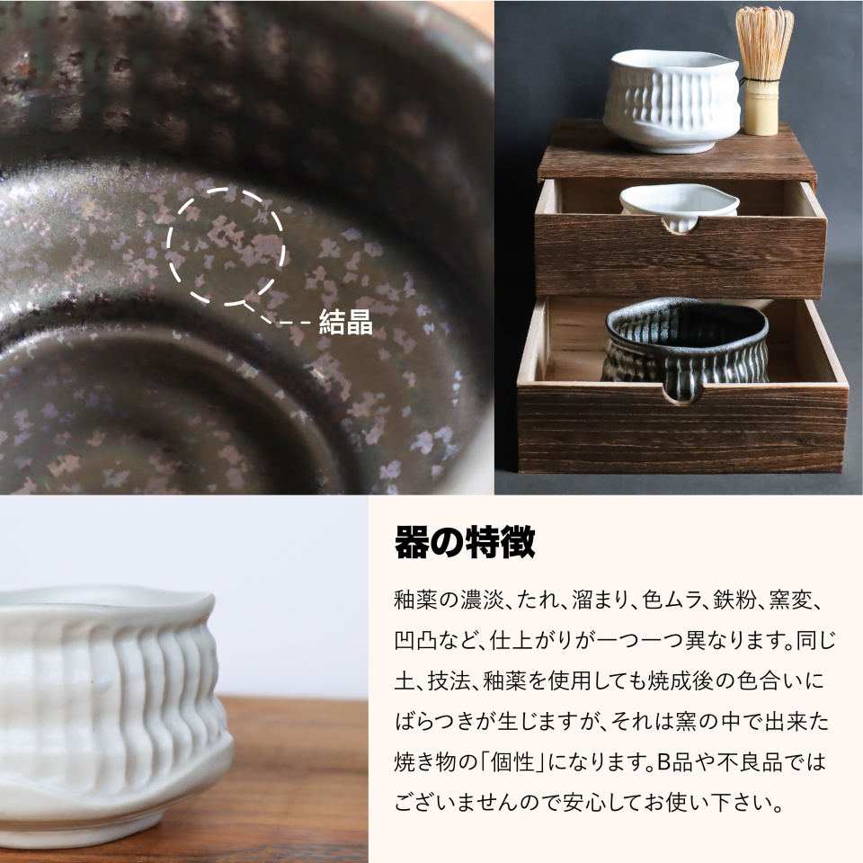 1点ずつ手作業で繊細かつ丹念に創られた抹茶碗は、目で見て手で触れて堪能できる、まさに用の美の逸品です。