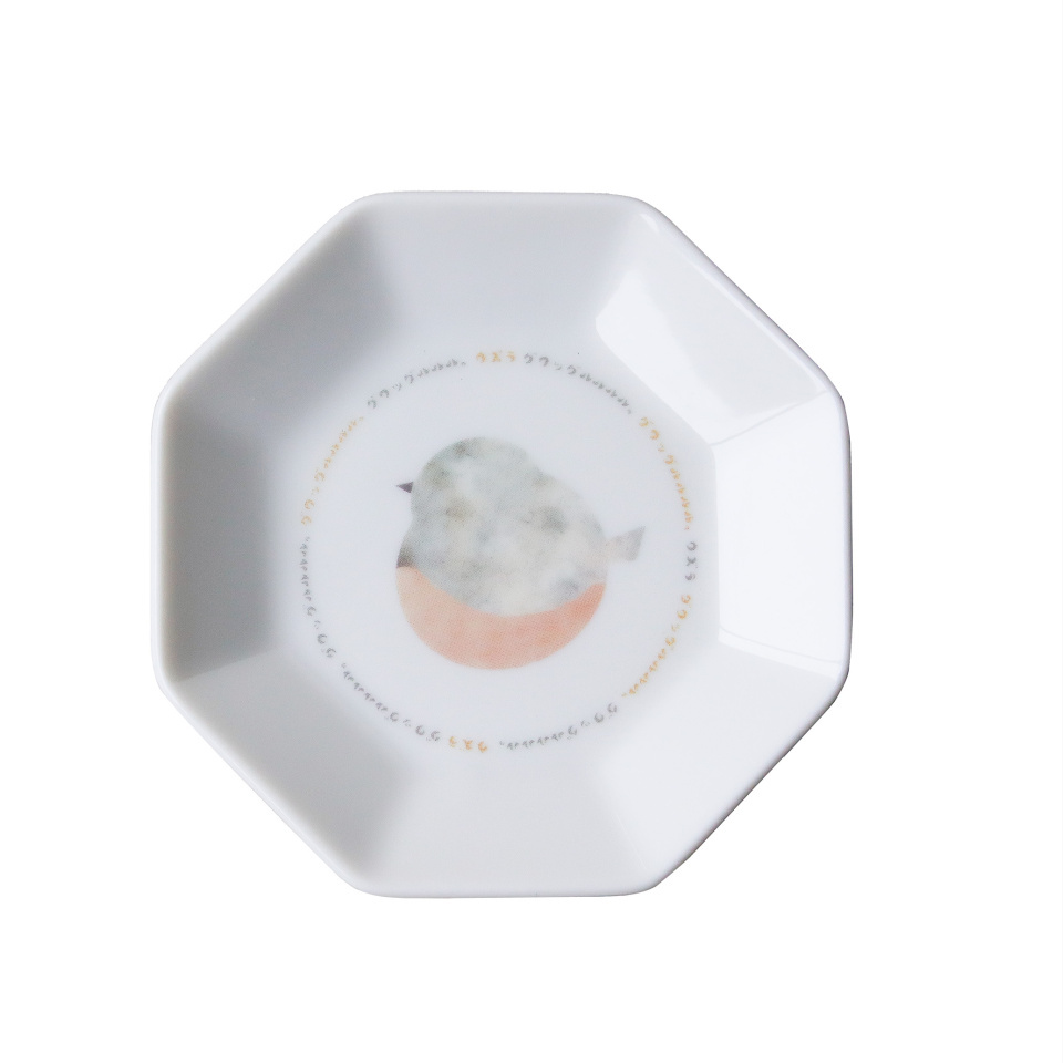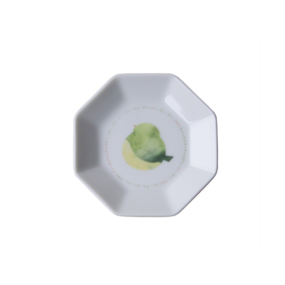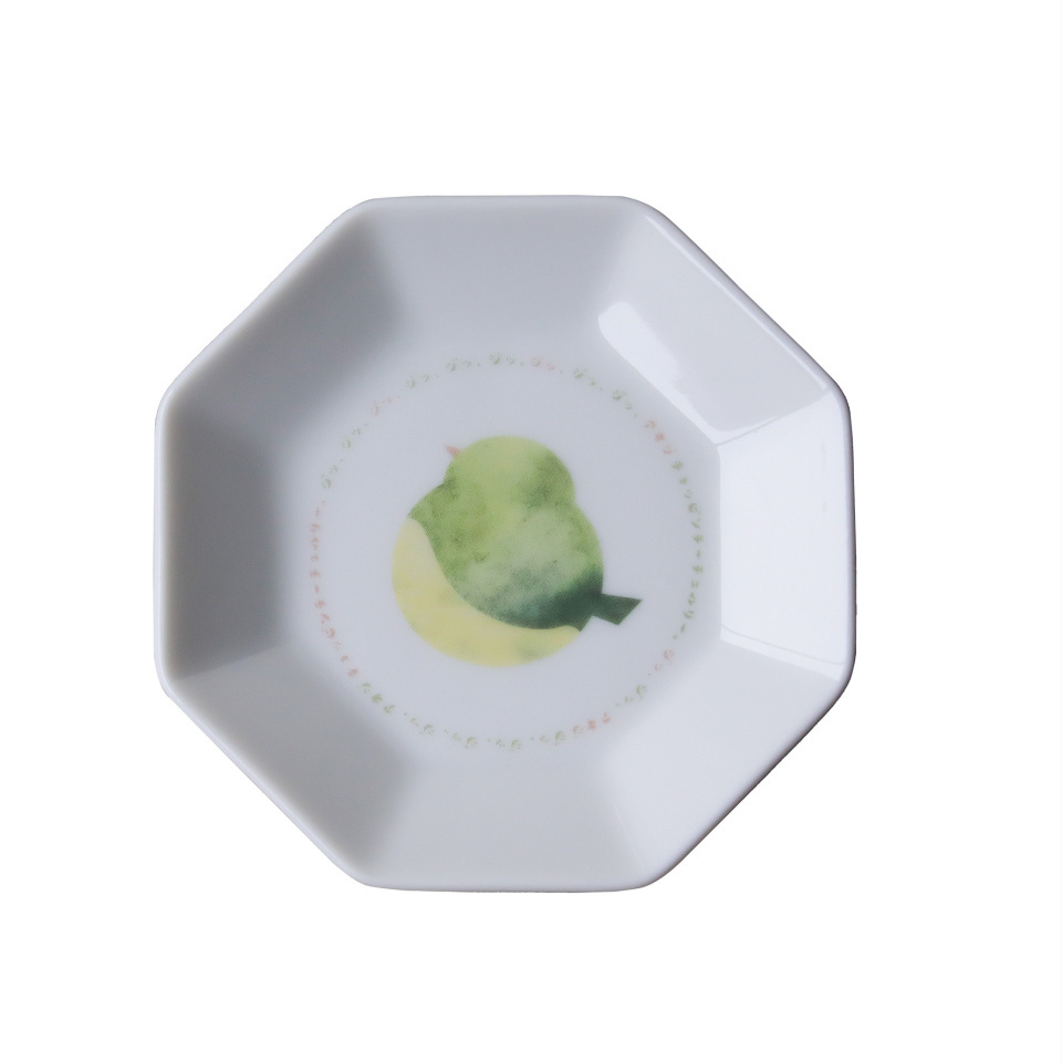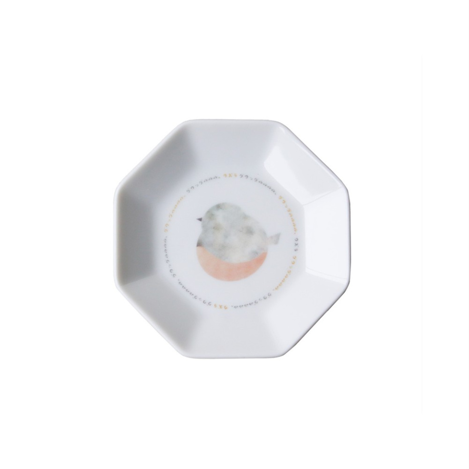 八角の形と水彩風の小鳥が相まって可愛らしさ溢れる、乙女心くすぐるデザイン。