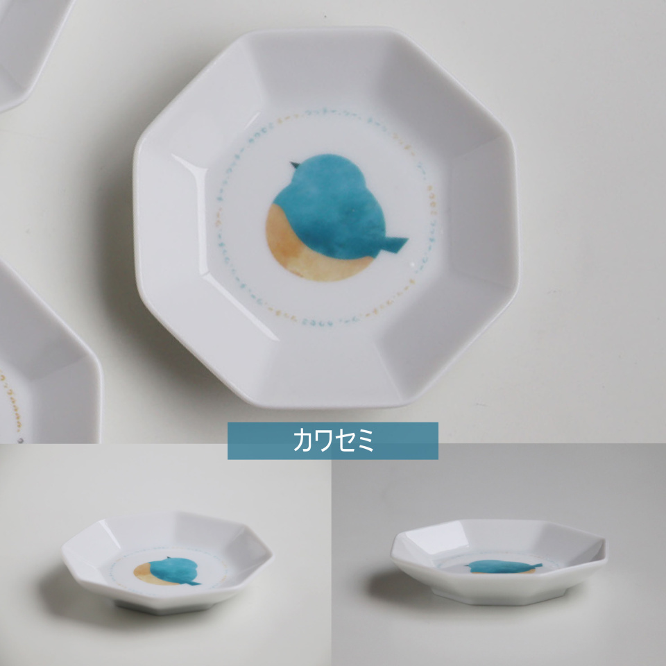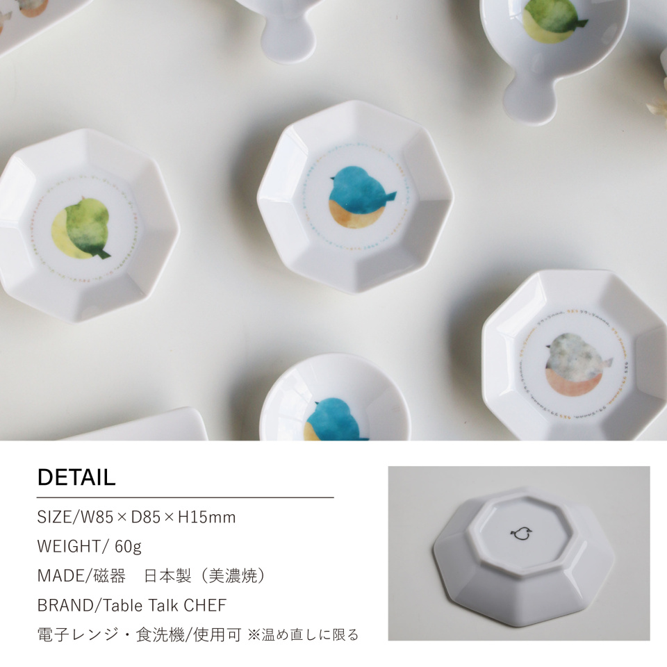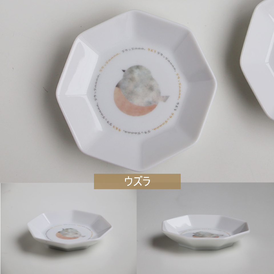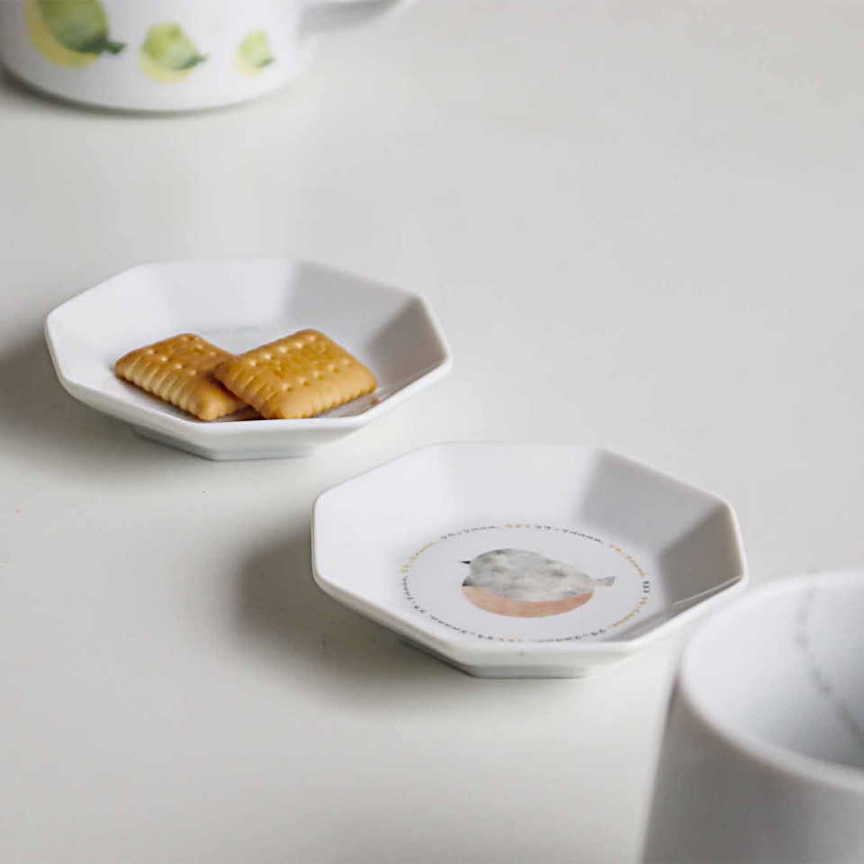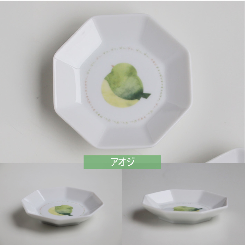 八角の形と水彩風の小鳥が相まって可愛らしさ溢れる、乙女心くすぐるデザイン。