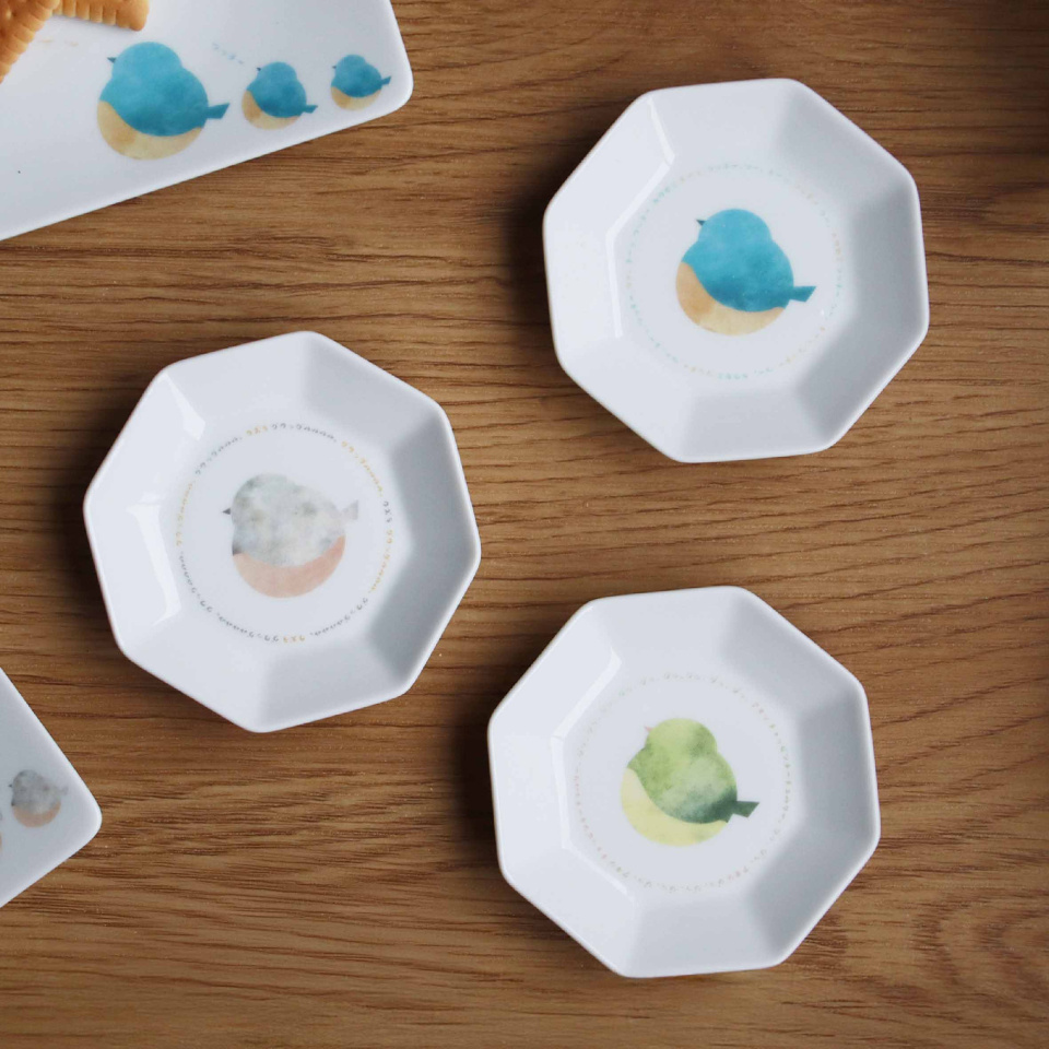 淡く澄んだsuisaiの鳥たち。色とりどりのコトリたちを集めてうつわになりました。