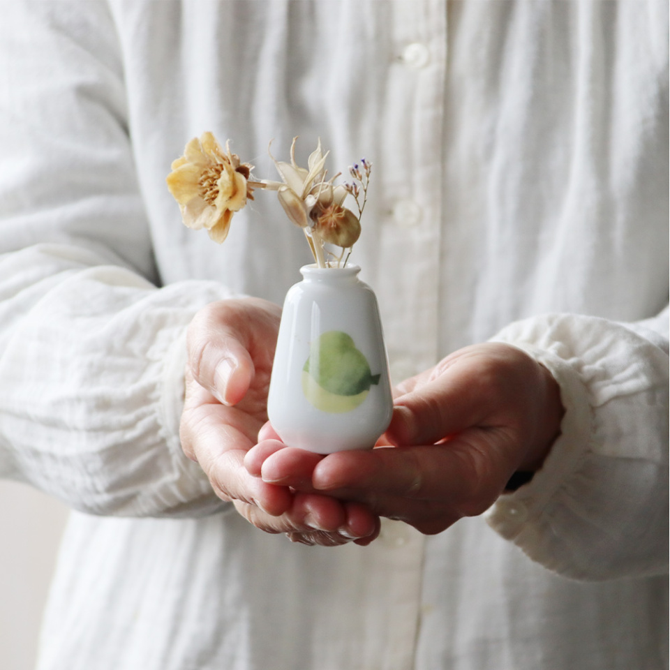 てのひらに納まる、小さめなサイズの一輪挿しです。