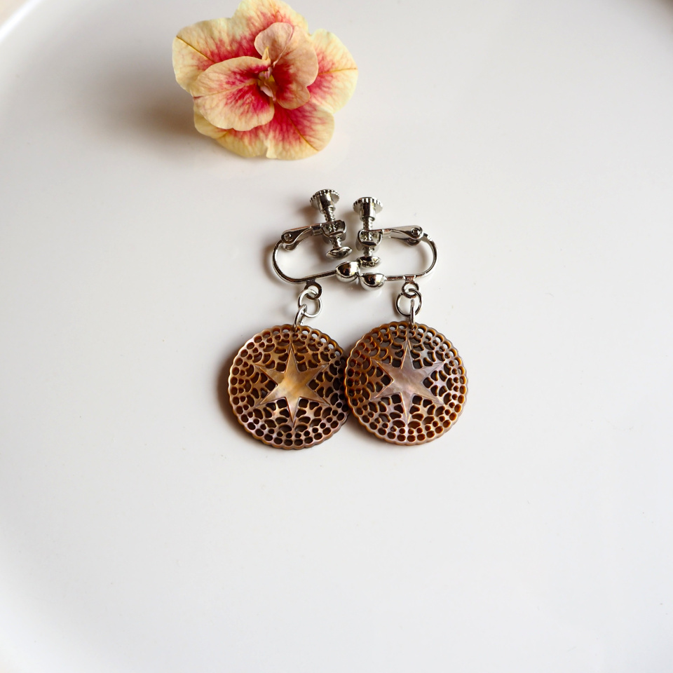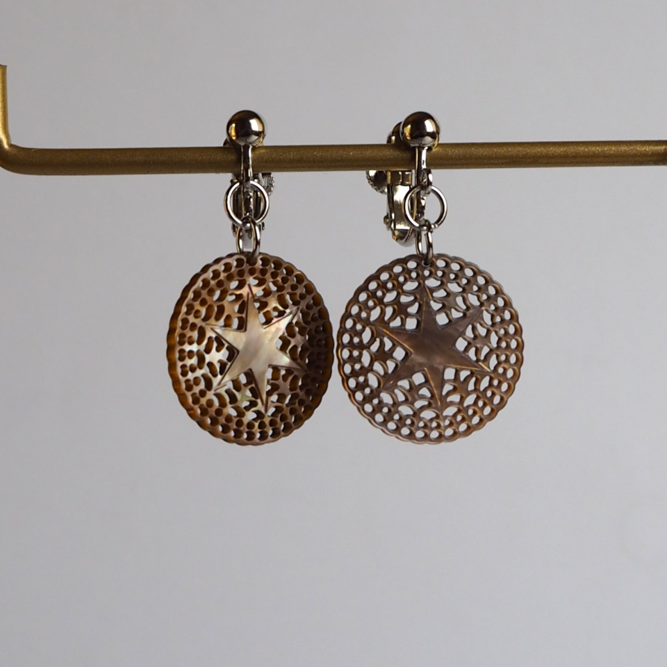 高級貝とされる蝶貝・マザーオブパールの中の「茶蝶貝(ブラウンシェル)」のイヤリングです。