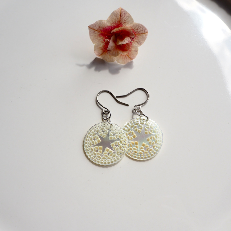 ベツレヘムパールのような物語を感じる星とレースを透かし彫刻しています。