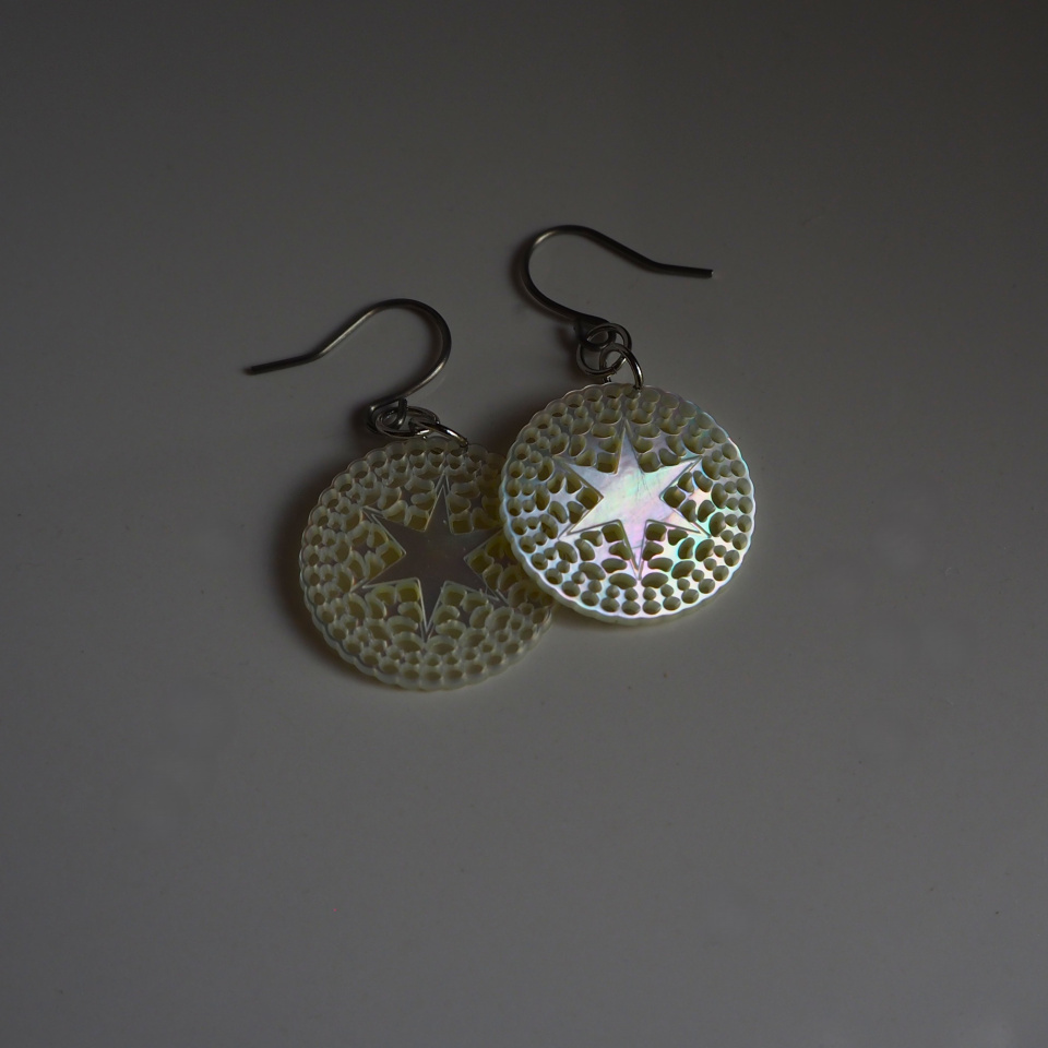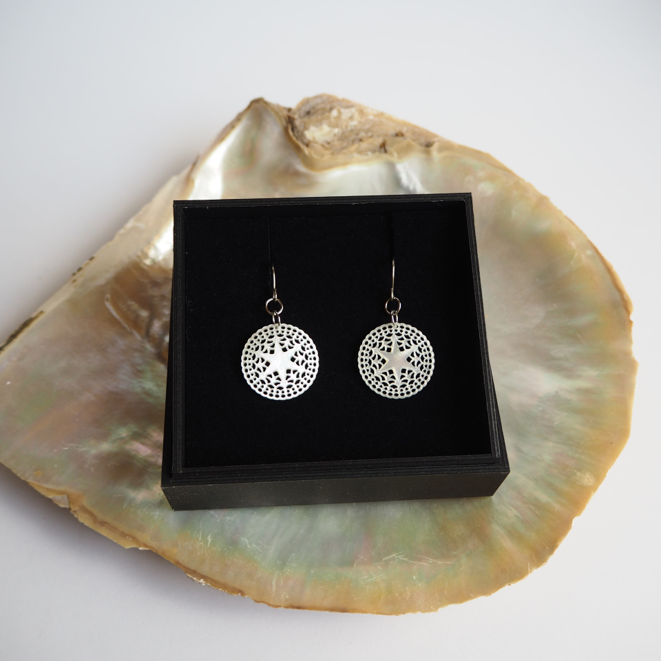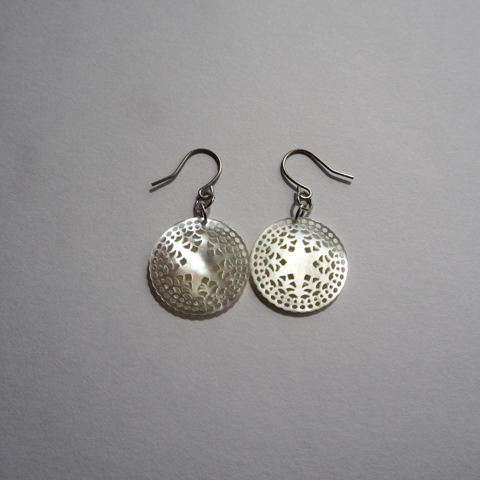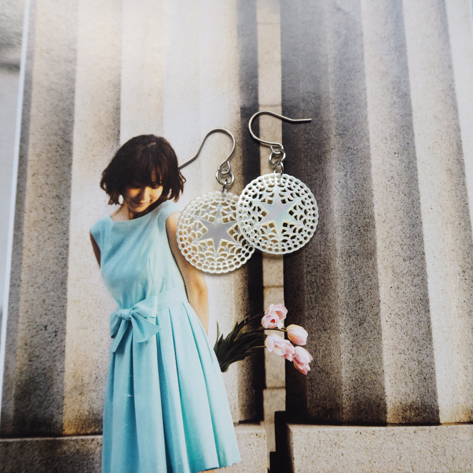 歴史ある美しい蝶貝をもっと身近に感じていただきたくて、ボタン製造で培ってきた技術を活かし、微細彫刻アクセサリーを生み出しました。