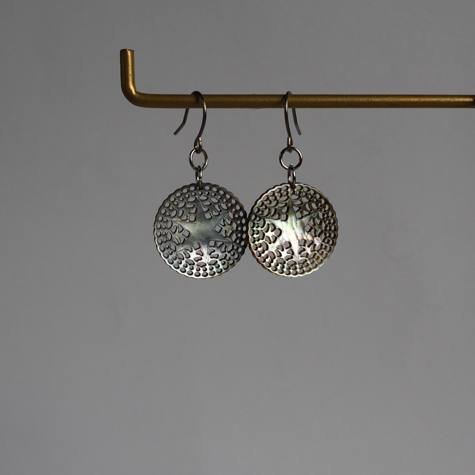 歴史ある美しい蝶貝をもっと身近に感じていただきたくて、ボタン製造で培ってきた技術を活かし、微細彫刻アクセサリーを生み出しました。