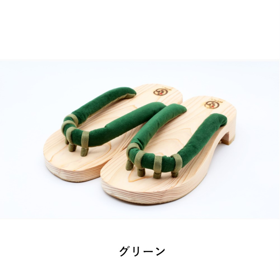 台座に岐阜の県産材である“東濃ひのき”を使用し、鼻緒はカジュアルなデザインに仕上げました。