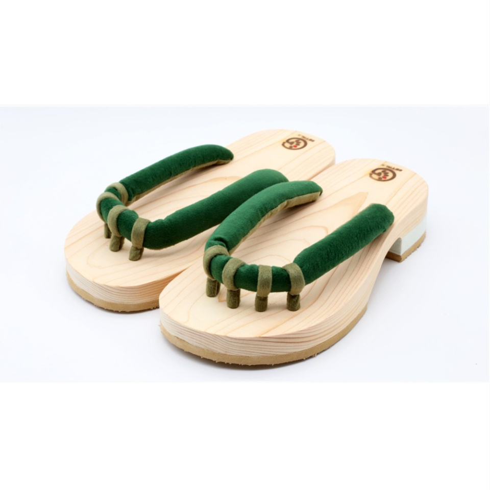台座に岐阜の県産材である“東濃ひのき”を使用し、鼻緒はカジュアルなデザインに仕上げました。