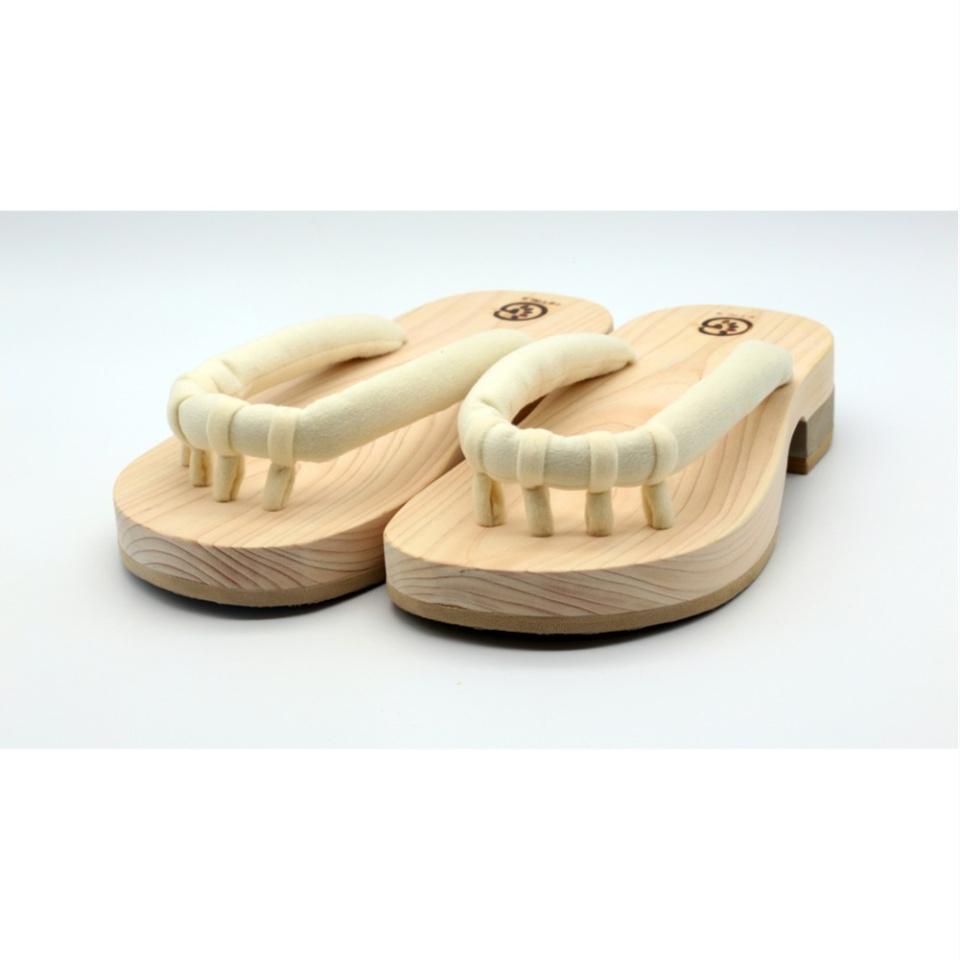 台座に岐阜の県産材である“東濃ひのき”を使用し、鼻緒はカジュアルなデザインに仕上げました。