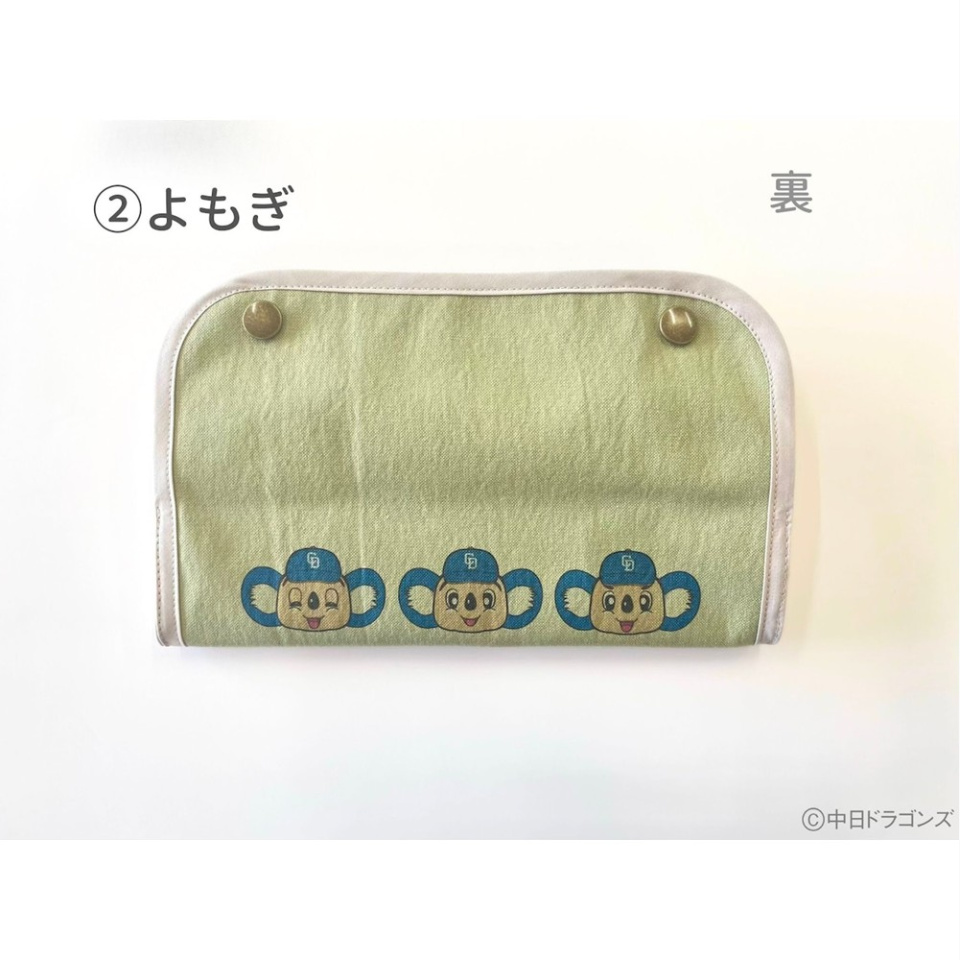 よもぎカラーは両面に自由度満載なドアラさんがプリントされており、色んなドアラさんを楽しんでいただけます。