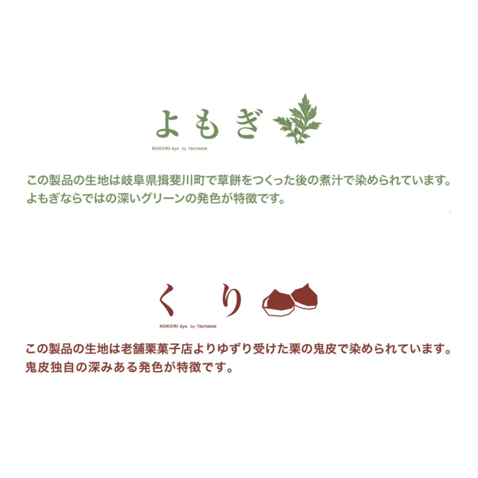 普段なら捨てられてしまう食べ物や植物を加工したあとに出る“のこり”、捨ててしまう部分で生地を染める新しい染色方法になります。